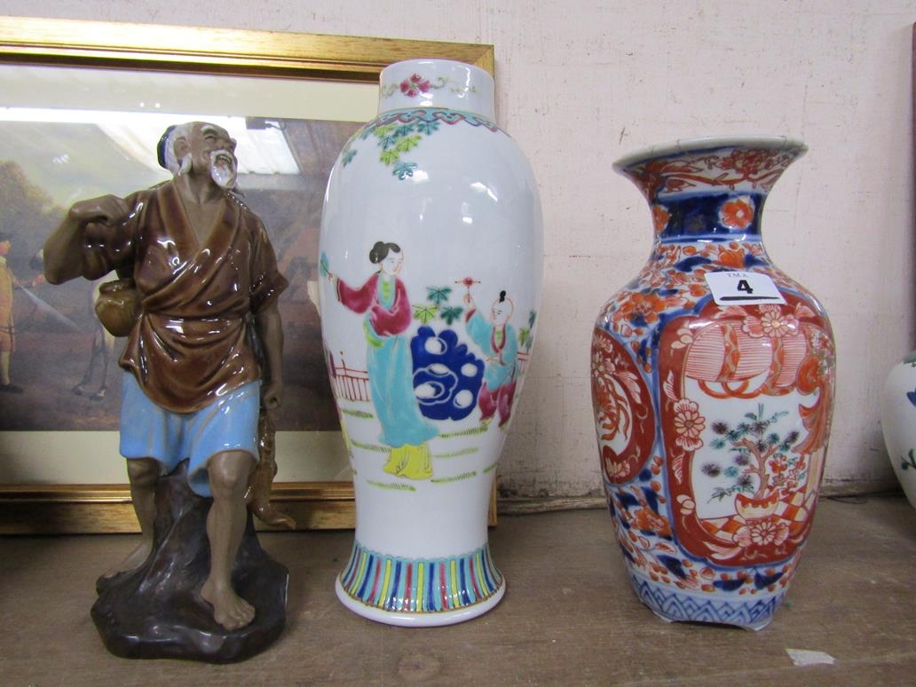 CHINESE AND JAPANESE VASES; CHINESE FIGURE