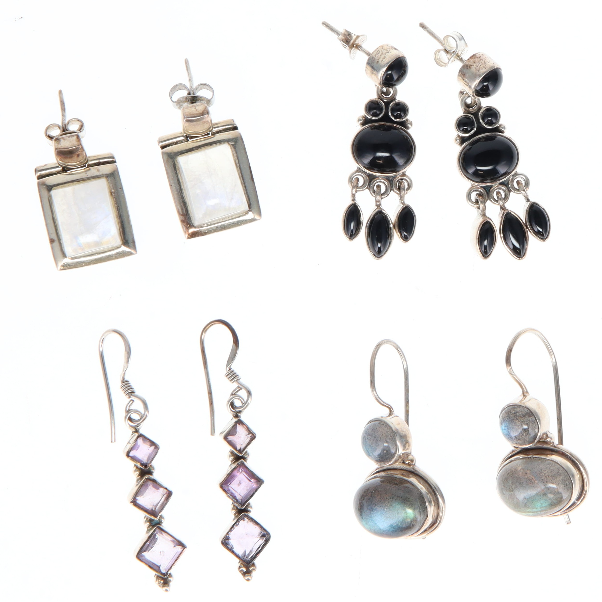 Sterling Silver Gemstone Earrings Collection incl. Moonstone, Labradorite, Amethyst, Onyx, 35g