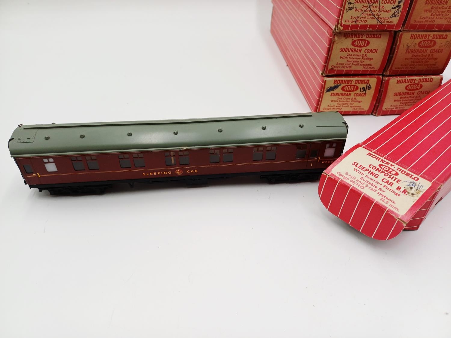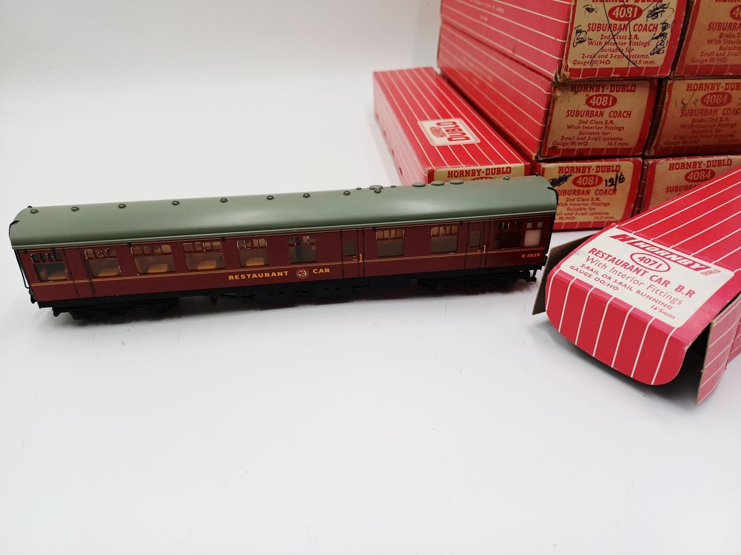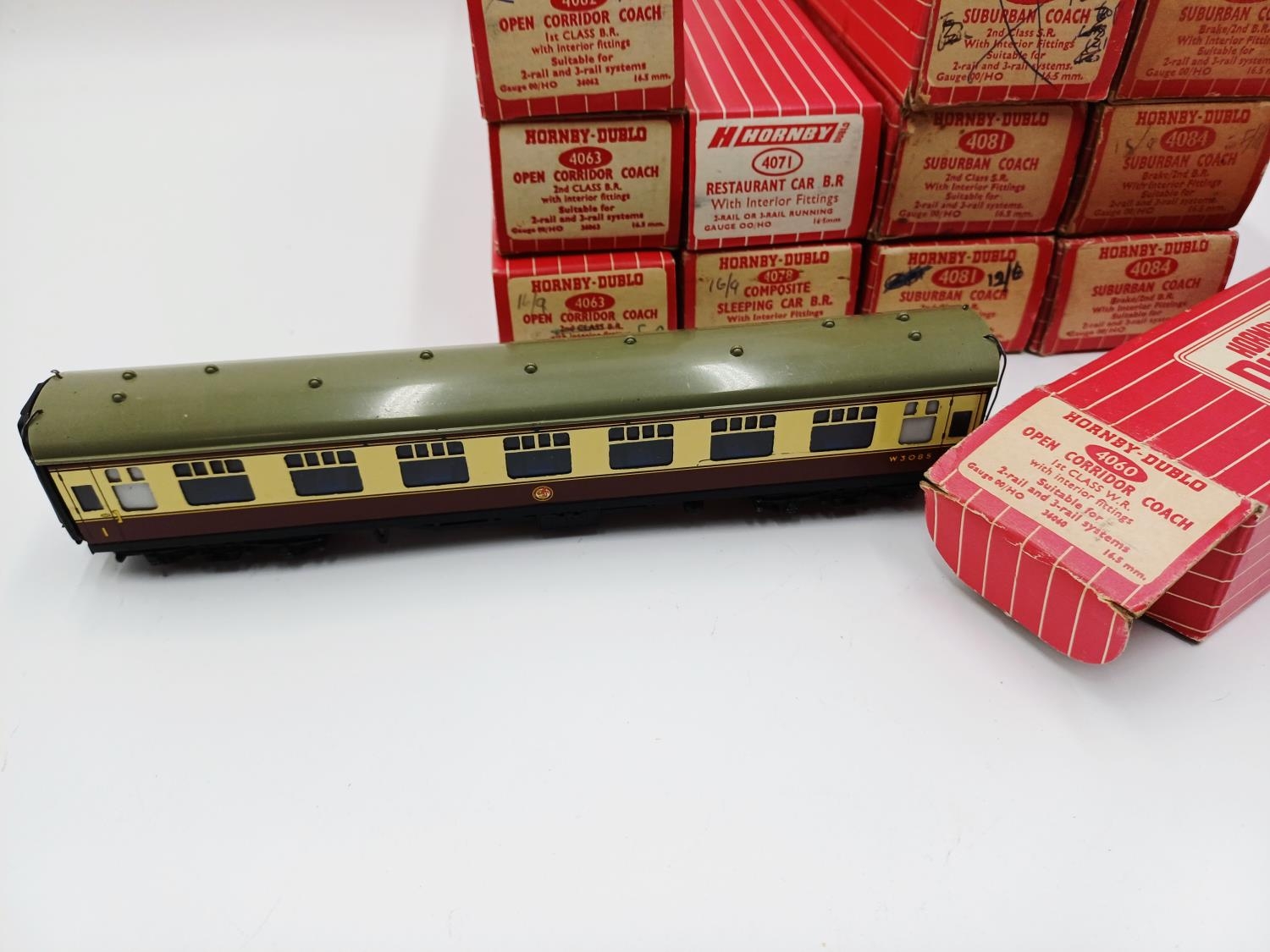 Twenty boxed Hornby Dublo 00 gauge passenger coaches to include 4063 open corridor coach, 4051 corridor coach, 4084 suburban coach, 4035 Pullman car, 4055 corridor coach etc.