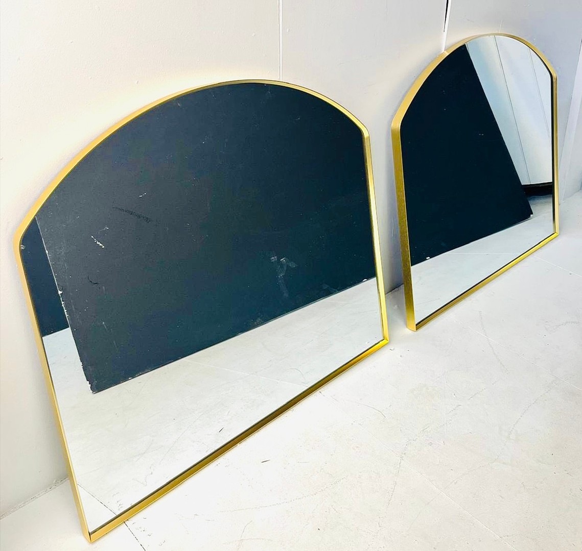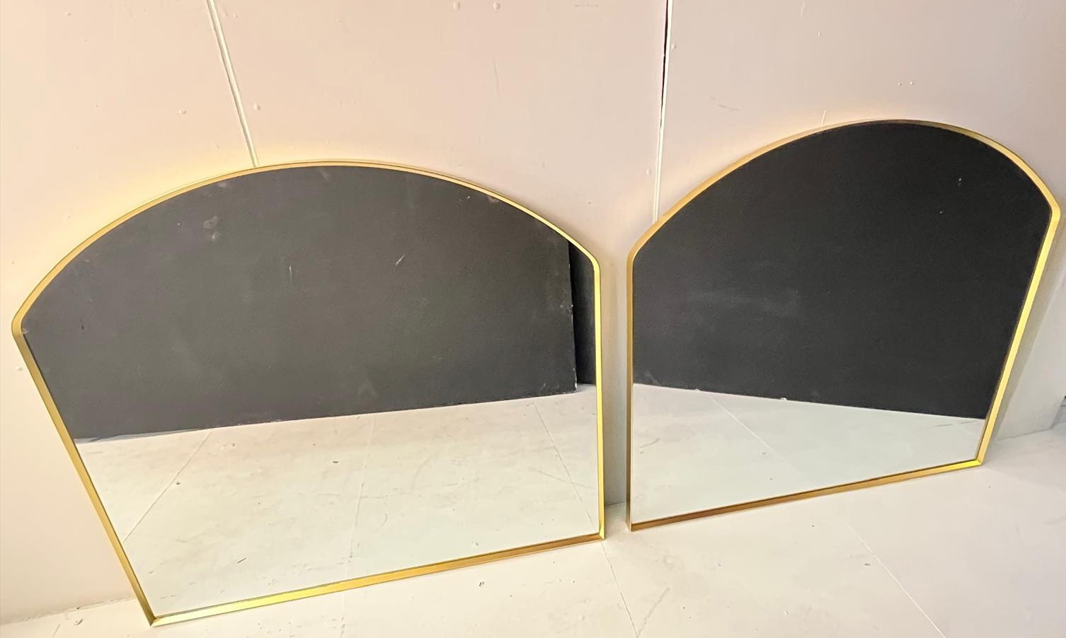 PAIR OF CONTEMPORARY OVERMANTLE MIRRORS. in gilt metal frames, 60cm H x 120cm W.