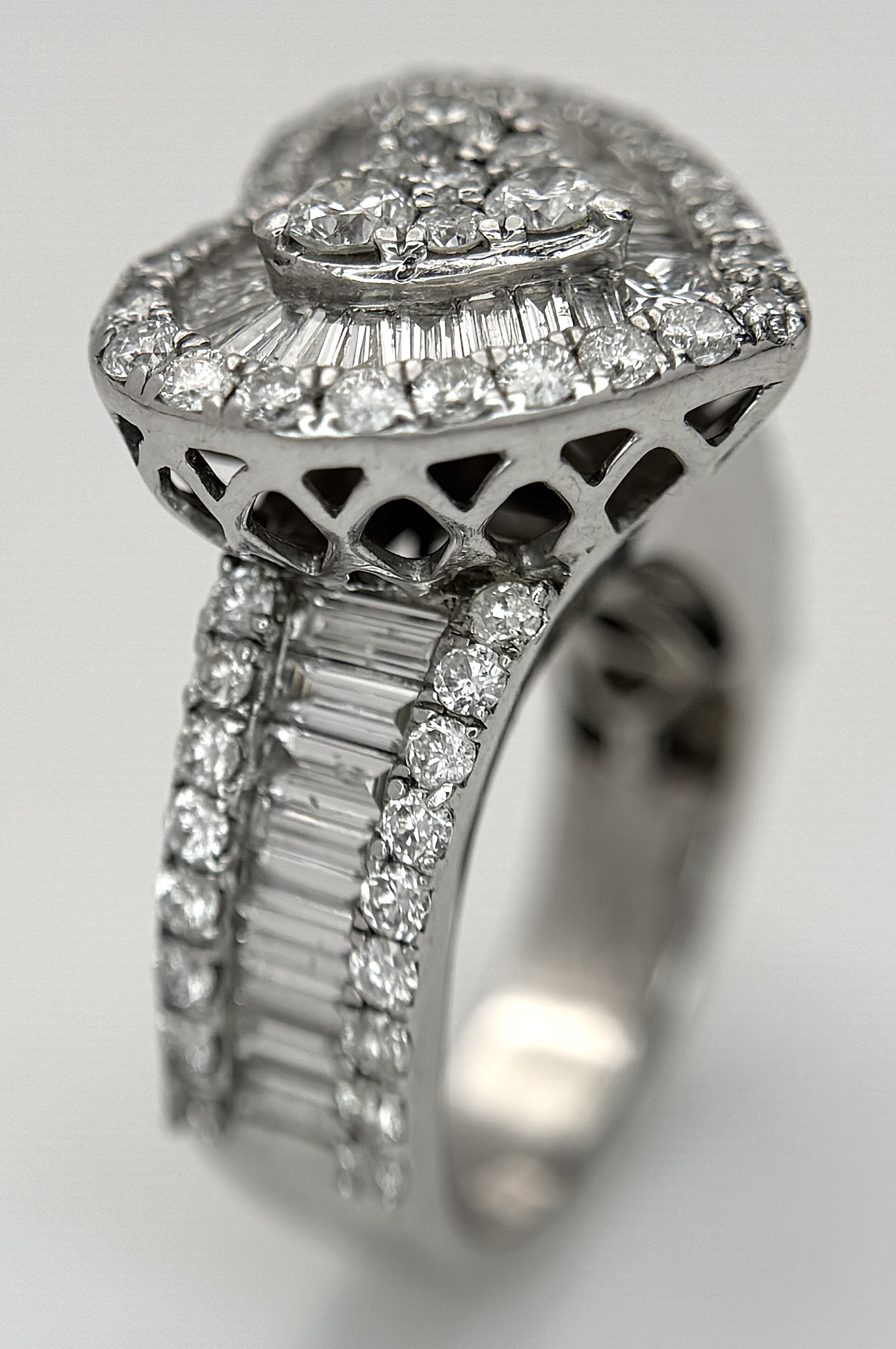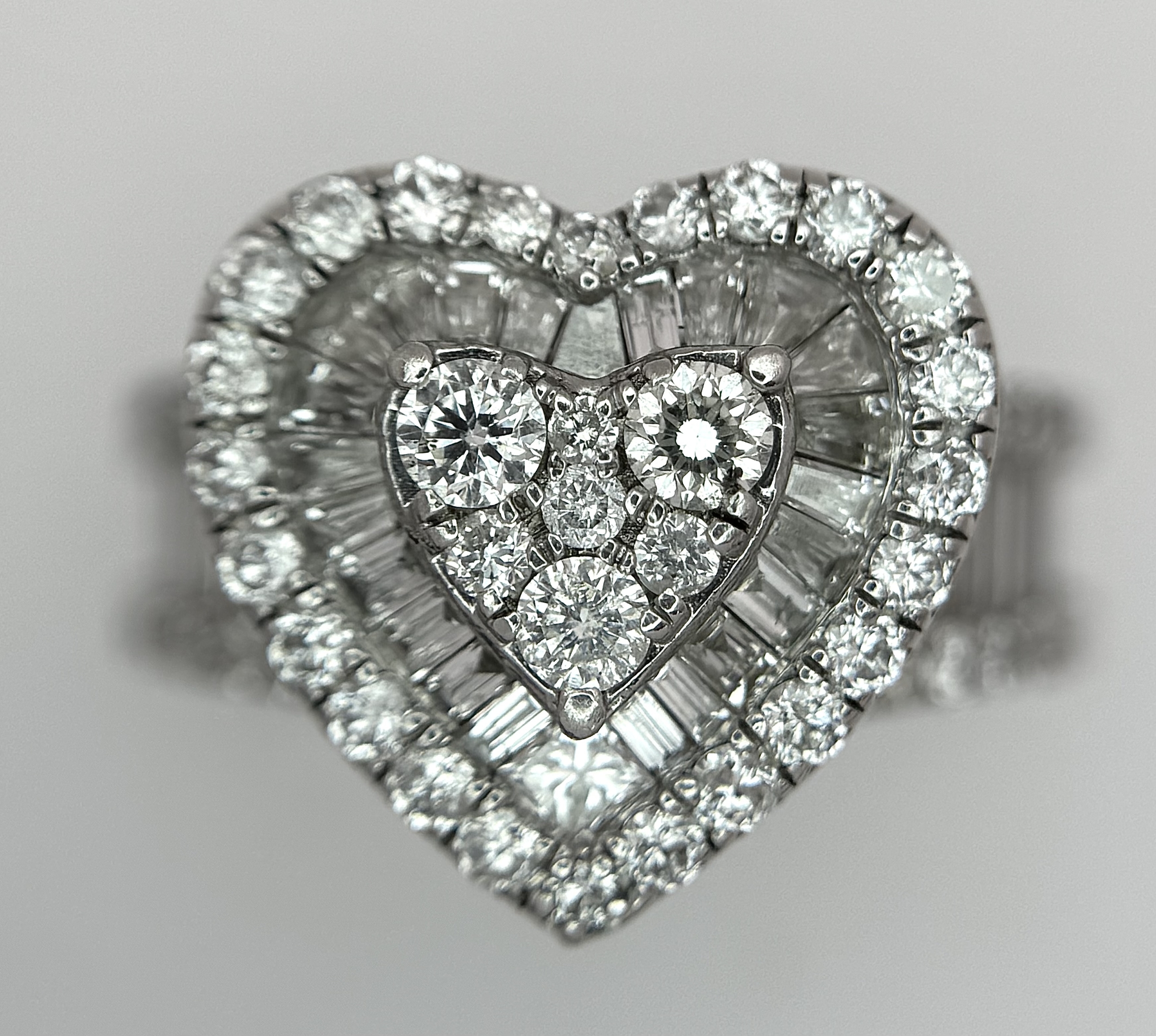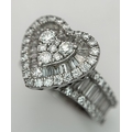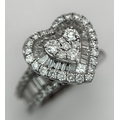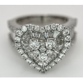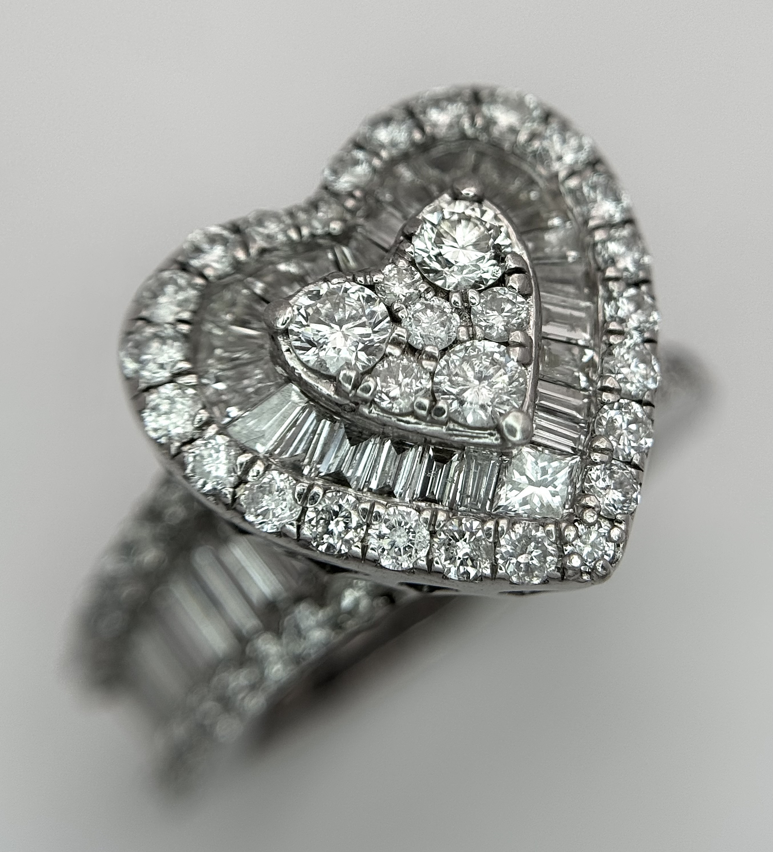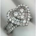 A 9K WHITE GOLD, MIXED CUT, DIAMOND SET, FANCY HEART DESIGN RING. 1.96CTW APPROX. 7.6G, SIZE M. SPSA 1030