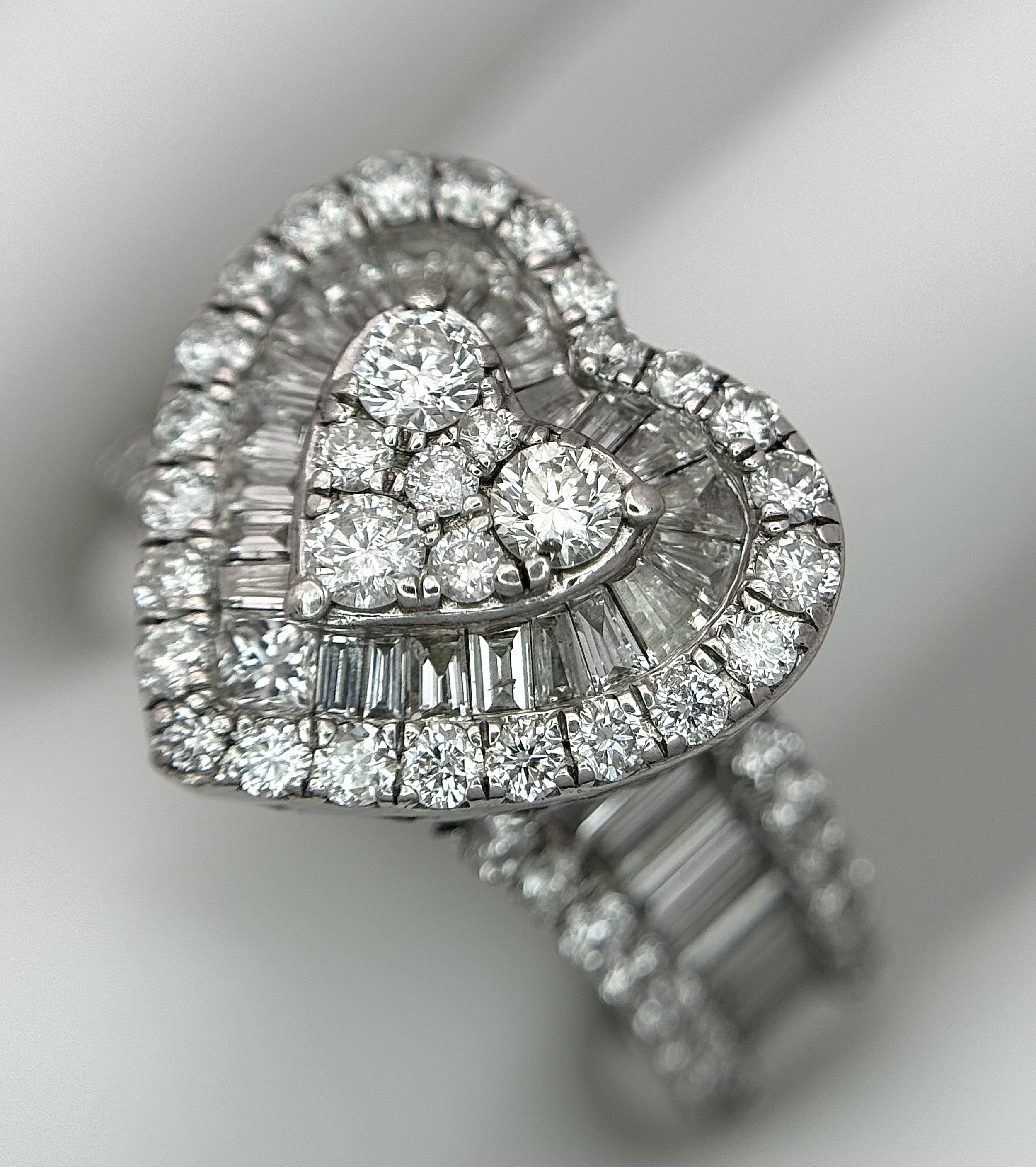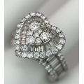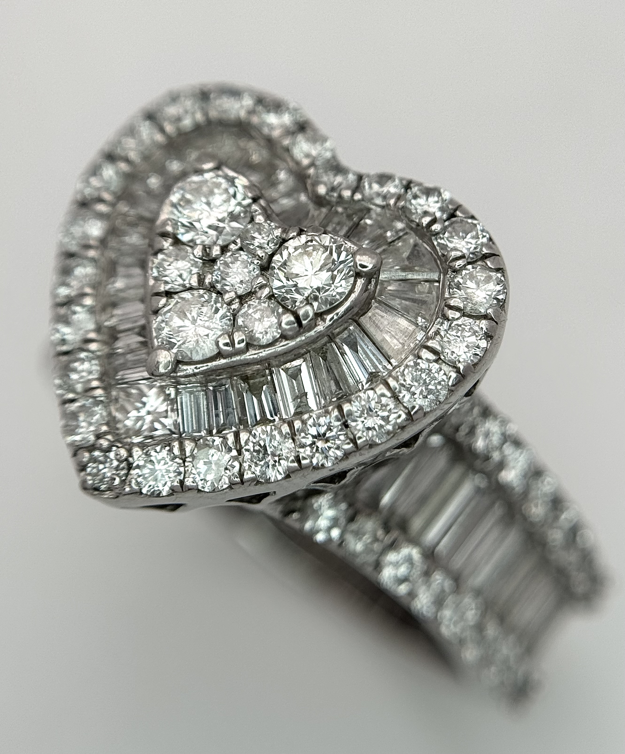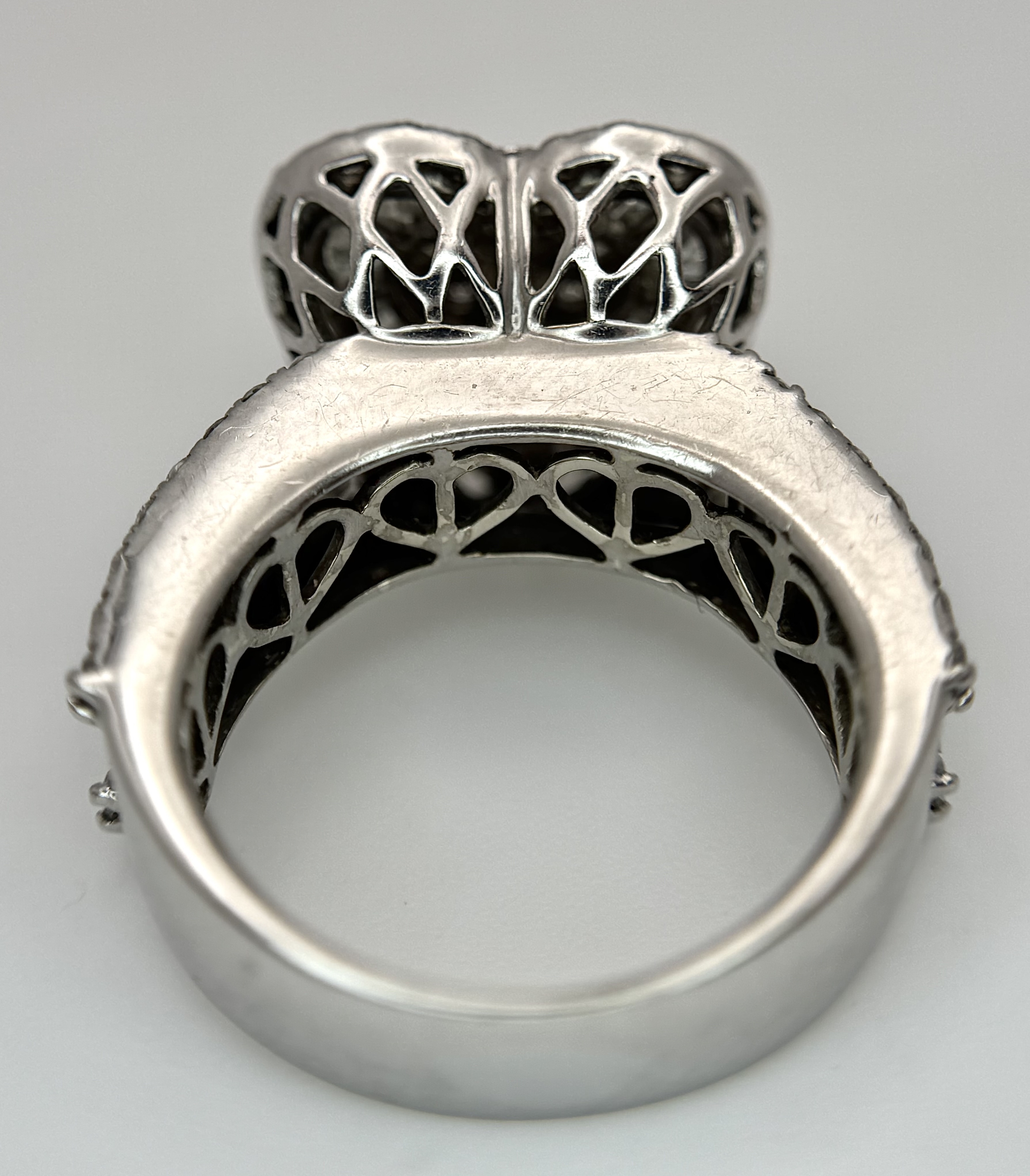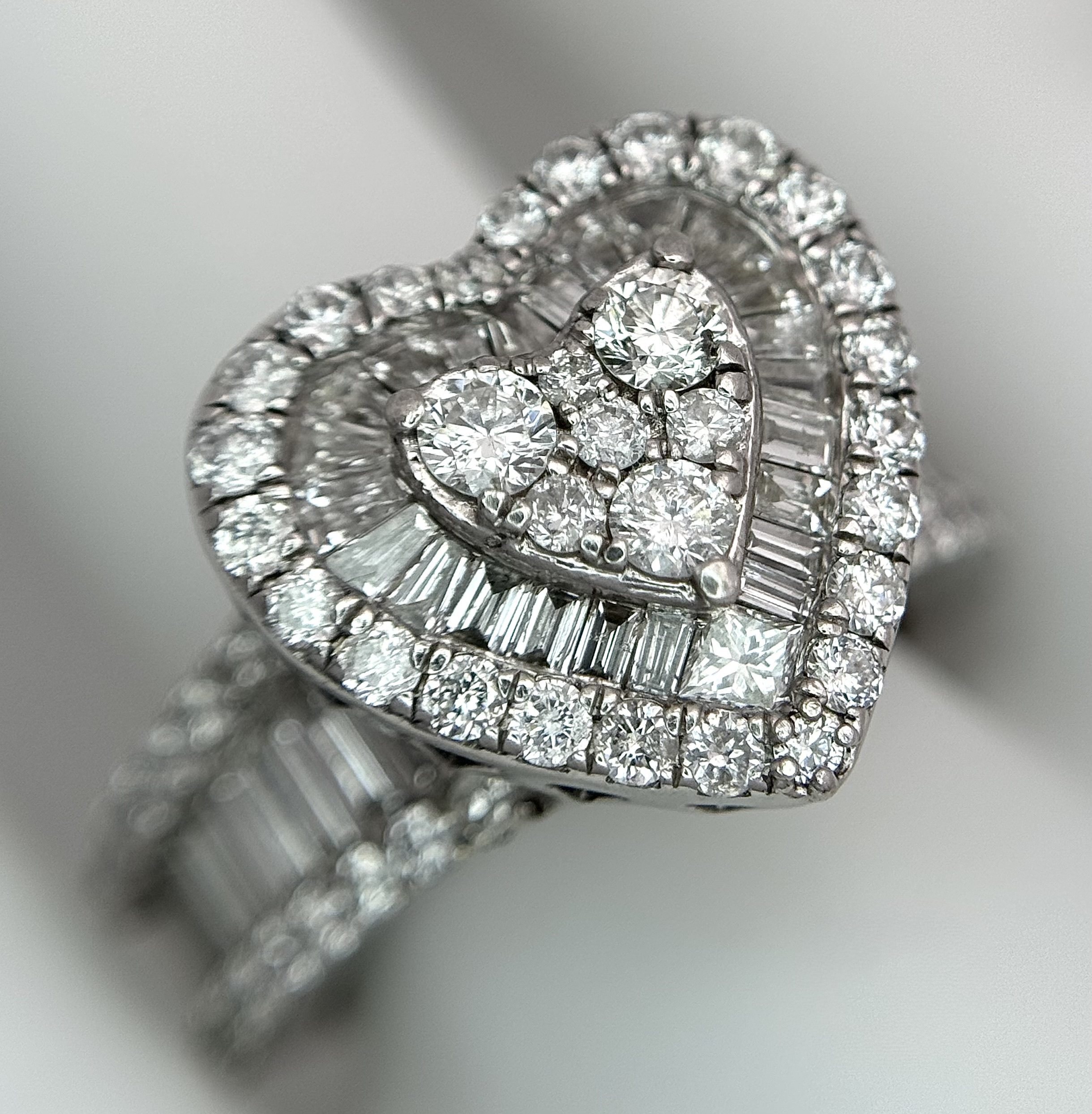 A 9K WHITE GOLD, MIXED CUT, DIAMOND SET, FANCY HEART DESIGN RING. 1.96CTW APPROX. 7.6G, SIZE M. SPSA 1030
