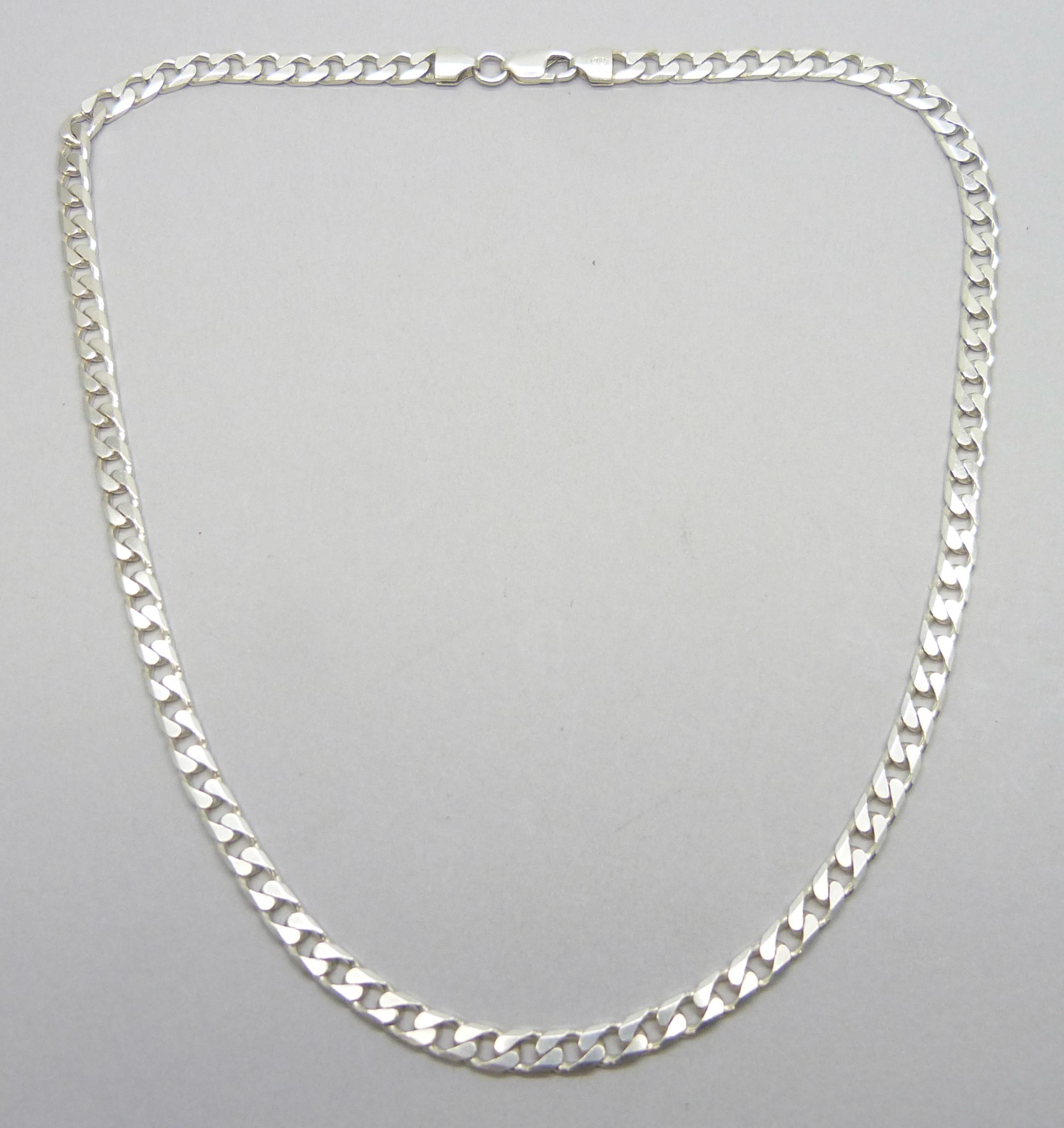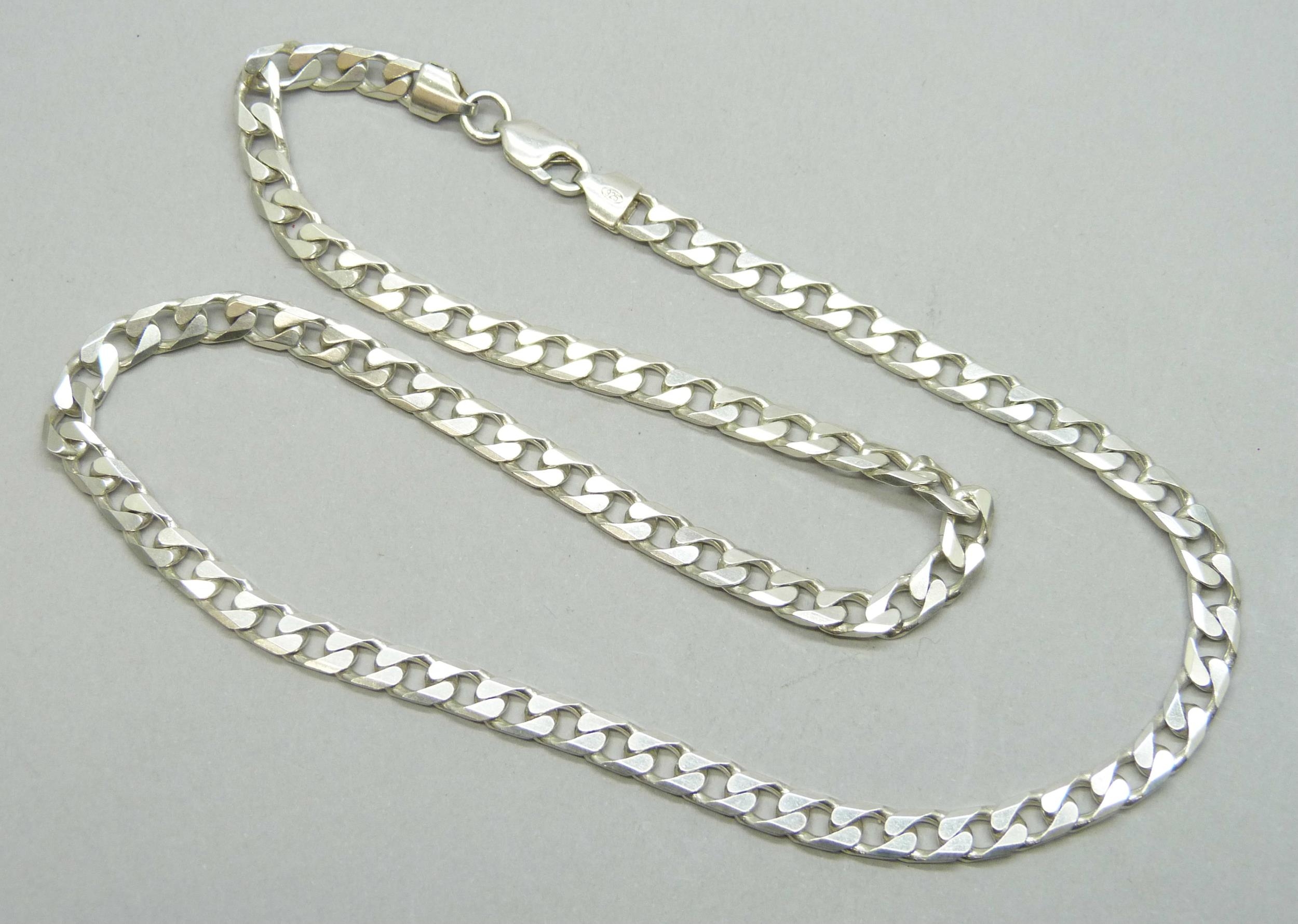 A long silver curb chain necklace, hallmarked, 32g, 5mm wide, 50.5cm