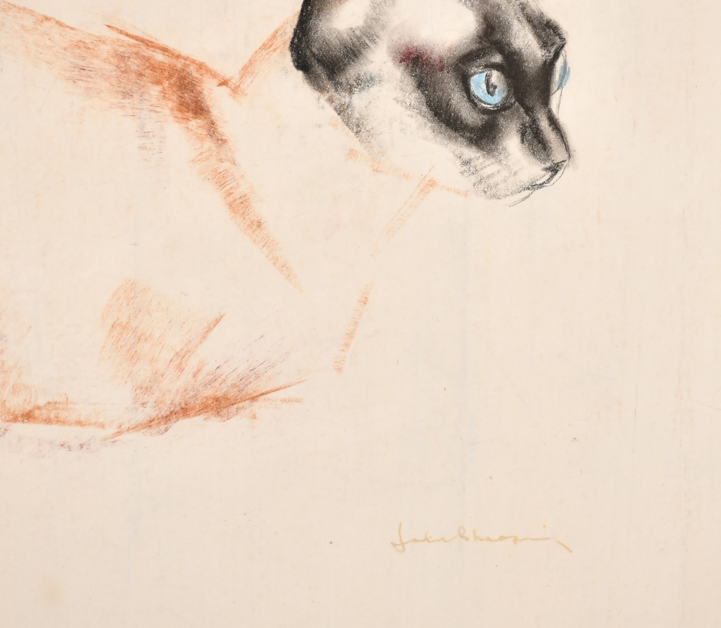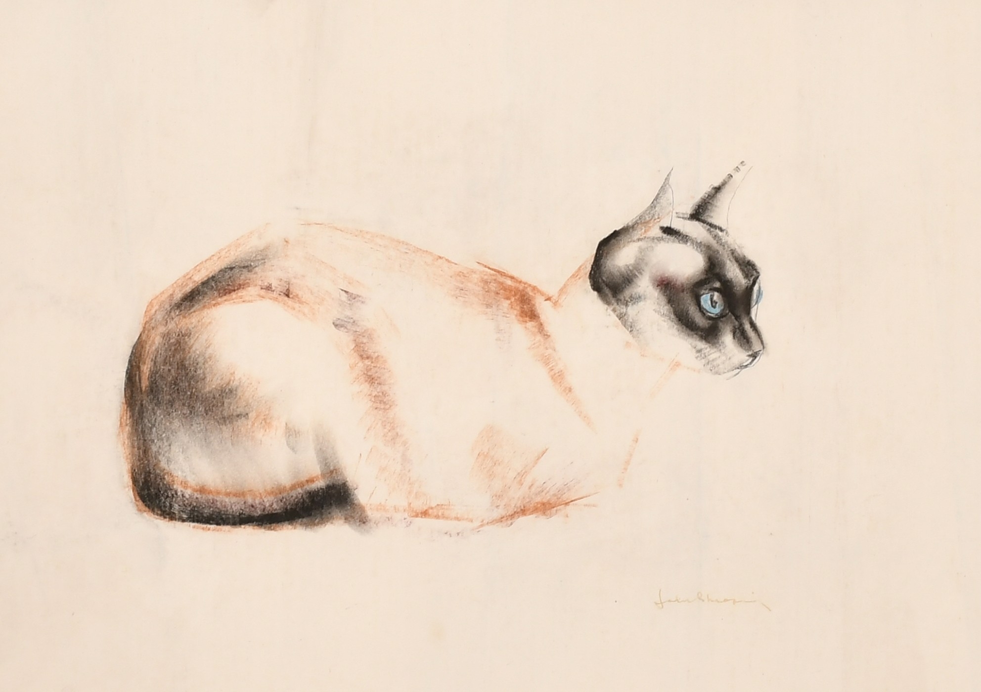 John Skeaping (1901-1980) British. Cat Crouching, Pencil, crayon and pastel, Signed, 13.5" x 19.5" (34.2 x 49.5cm)