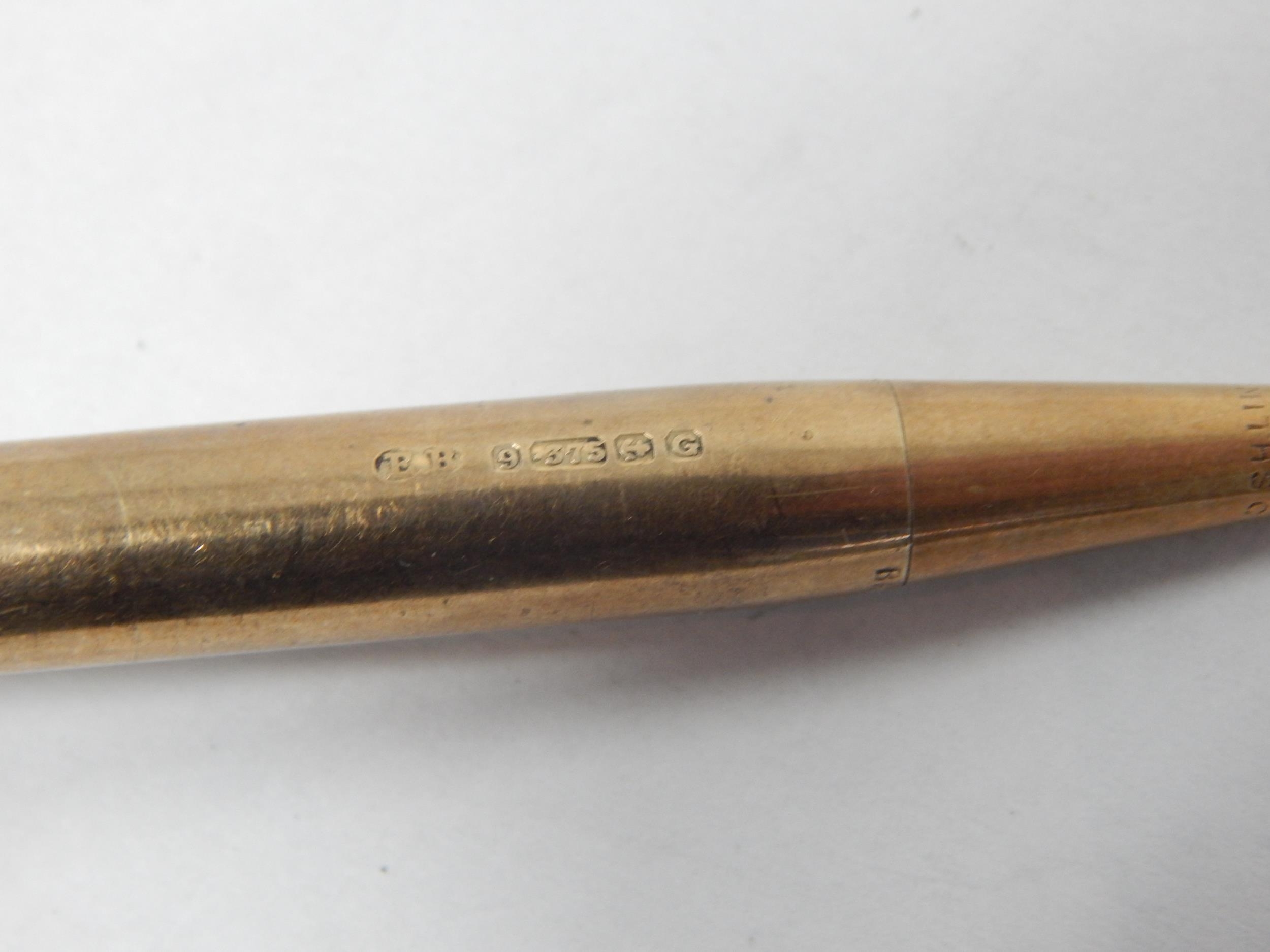 9ct Yellow Gold Propelling Pencil: Length 11cm: Gross weight 22.64g