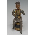 A Continental parcel-gilt and stone-set silver figure, of Charlemagne, seated in chased armour, 12cm high, apparently unmarked