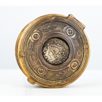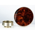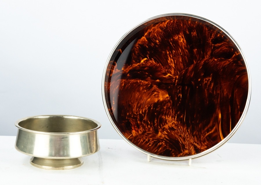 REDE GUZZUNI VINTAGE ITALIAN SILVER-PLATED CIRCULAR SIMULATED TORTOISESHELL BASED GALLERIED TRAY, 10 ¼" (26cm) diameter. ALSO a VINTAGE EASTERN EUROPEAN or RUSSIAN PEWTER LOW PEDESTAL BOWL, indistinct marks, 6" (15cm) diameter (2)