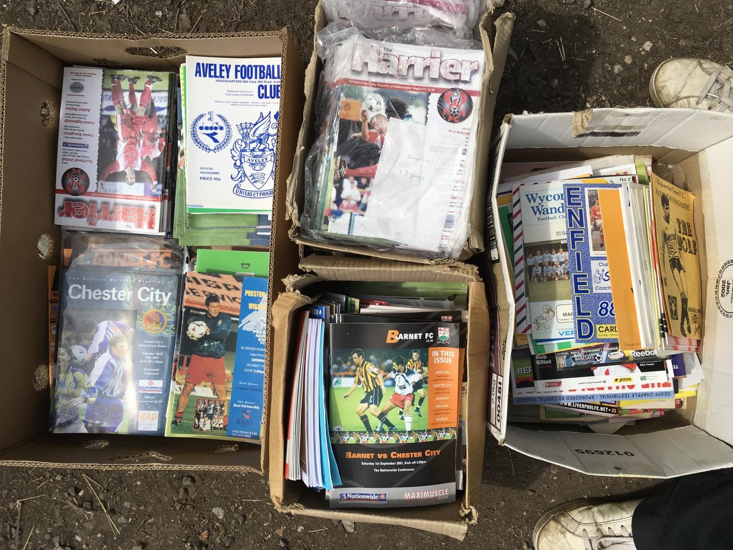 Non League Football Programme Boxes: Wide variety to include Kidderminster Barnet and a lot of Southern based teams. Mostly non league in good condition. Large quantity with instructions to sell. (4 boxes)