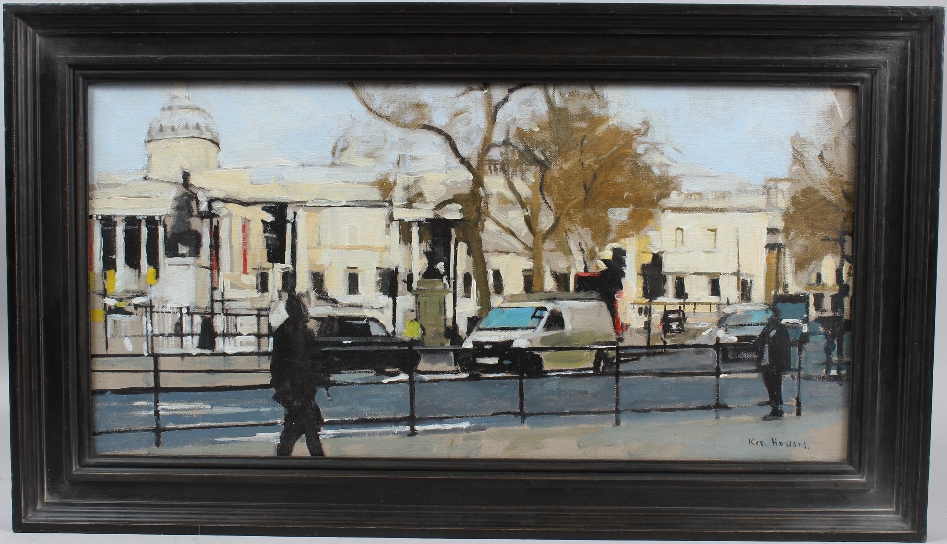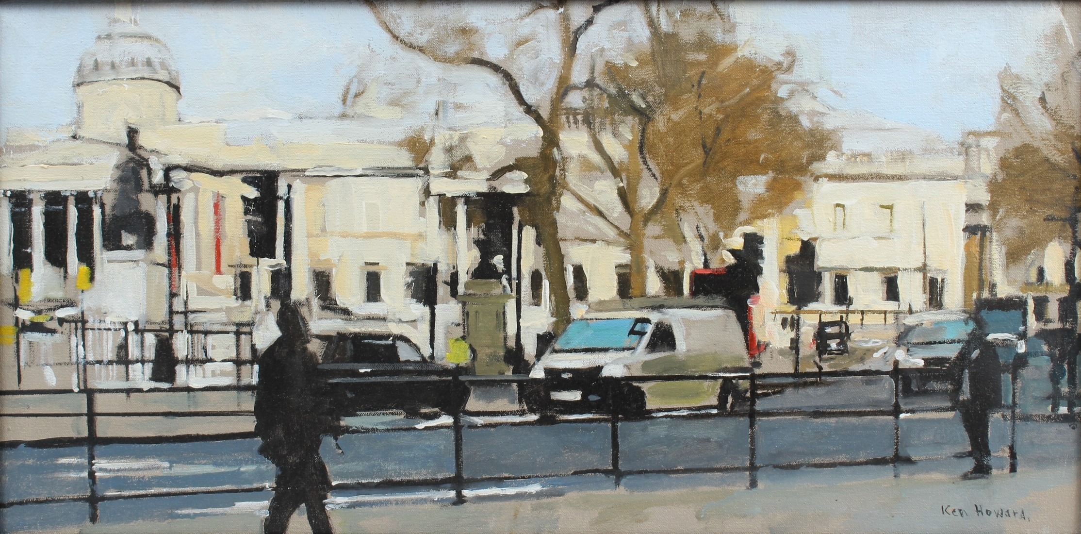 WITHDRAWN FROM SALE KEN HOWARD (1932-2022) 'The National Gallery' oil on canvas signed 29 x 60cm