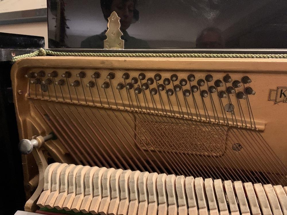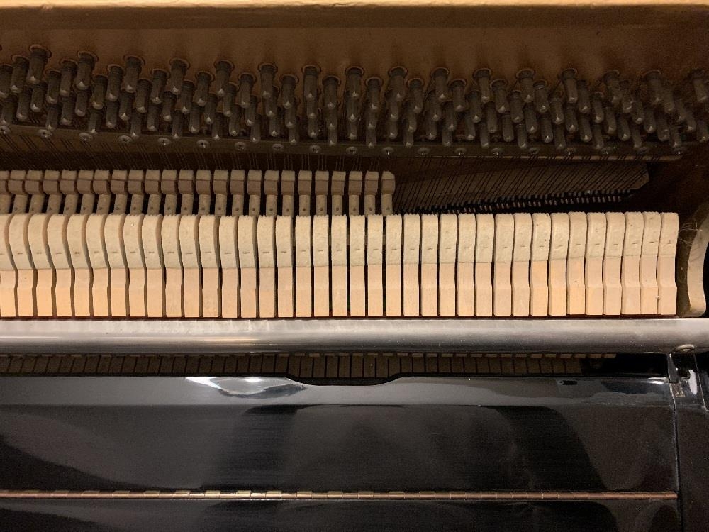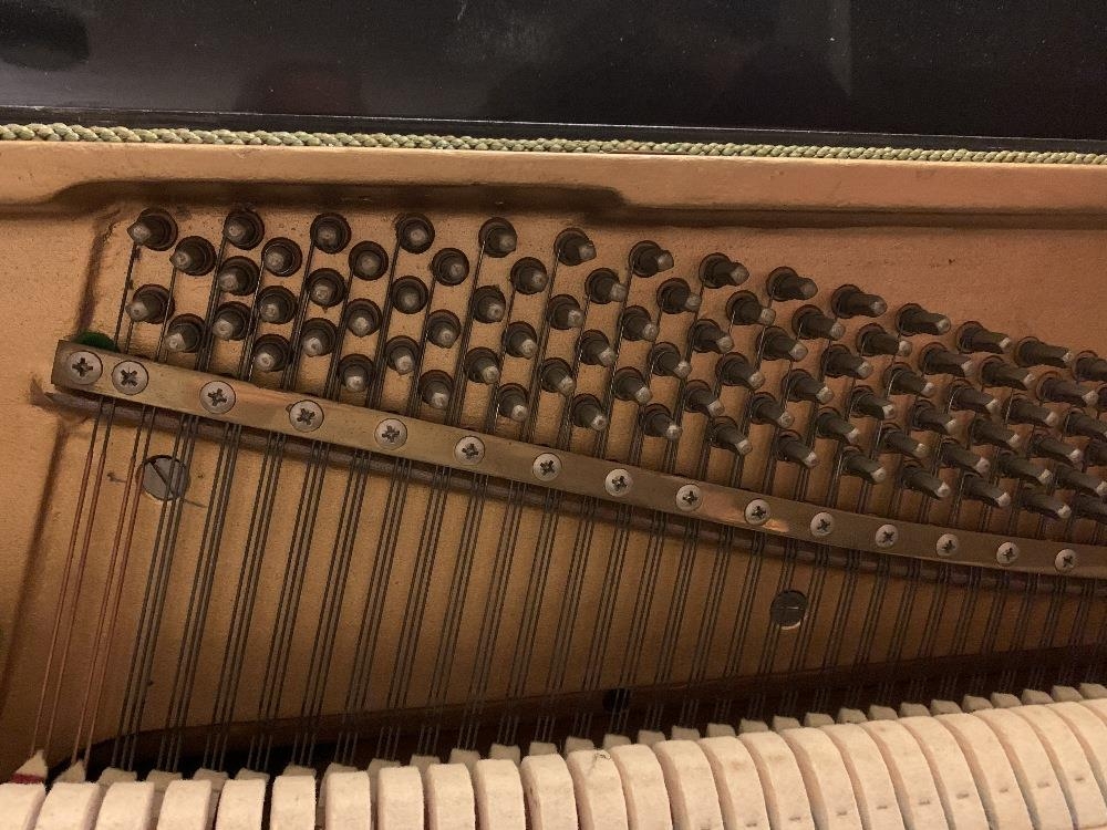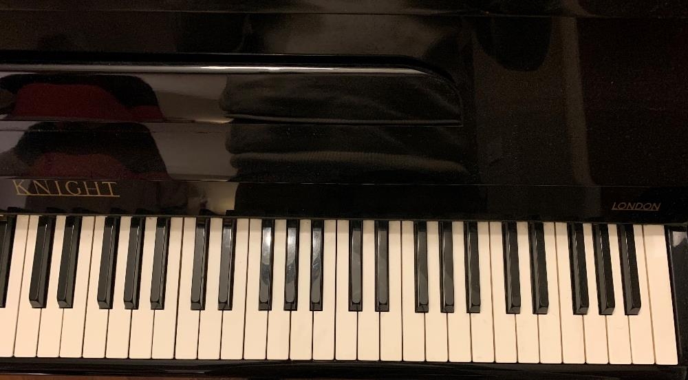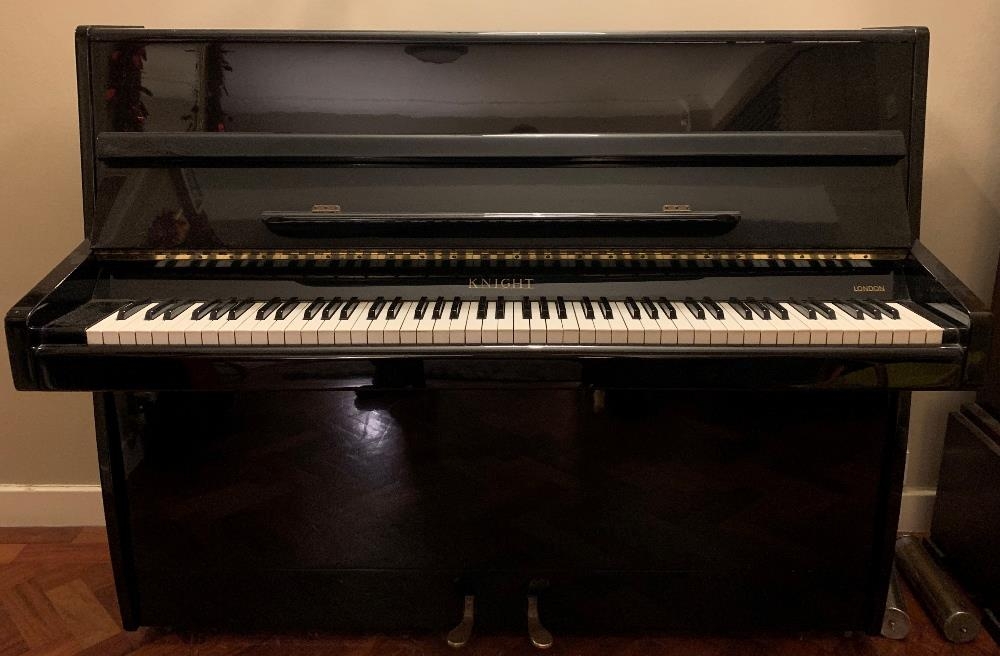 Knight (c1971) An upright piano in a modern style ebonised case.
