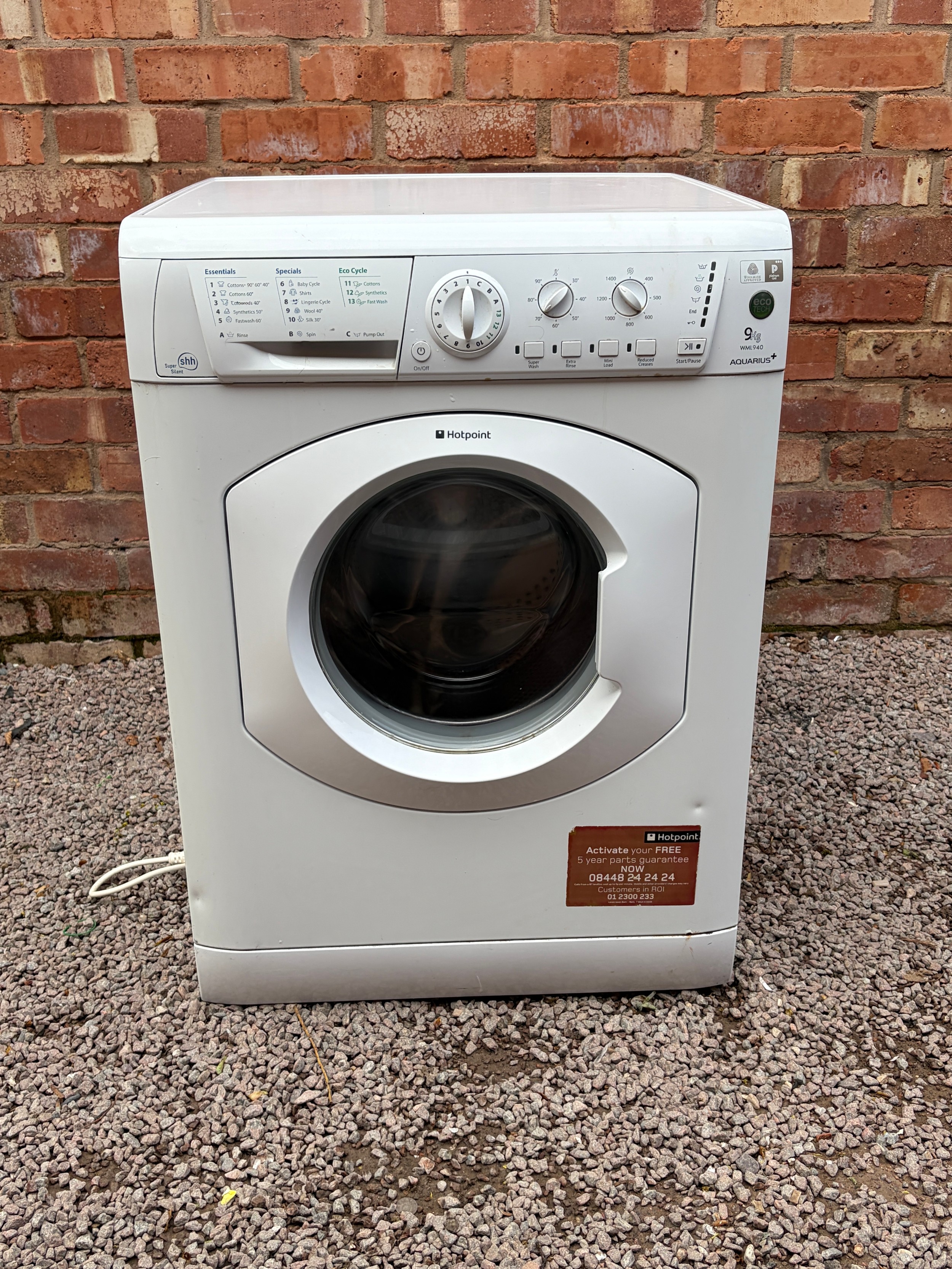 HOTPOINT 9KG AQUARIUS WASHING MACHINE