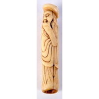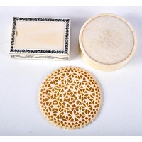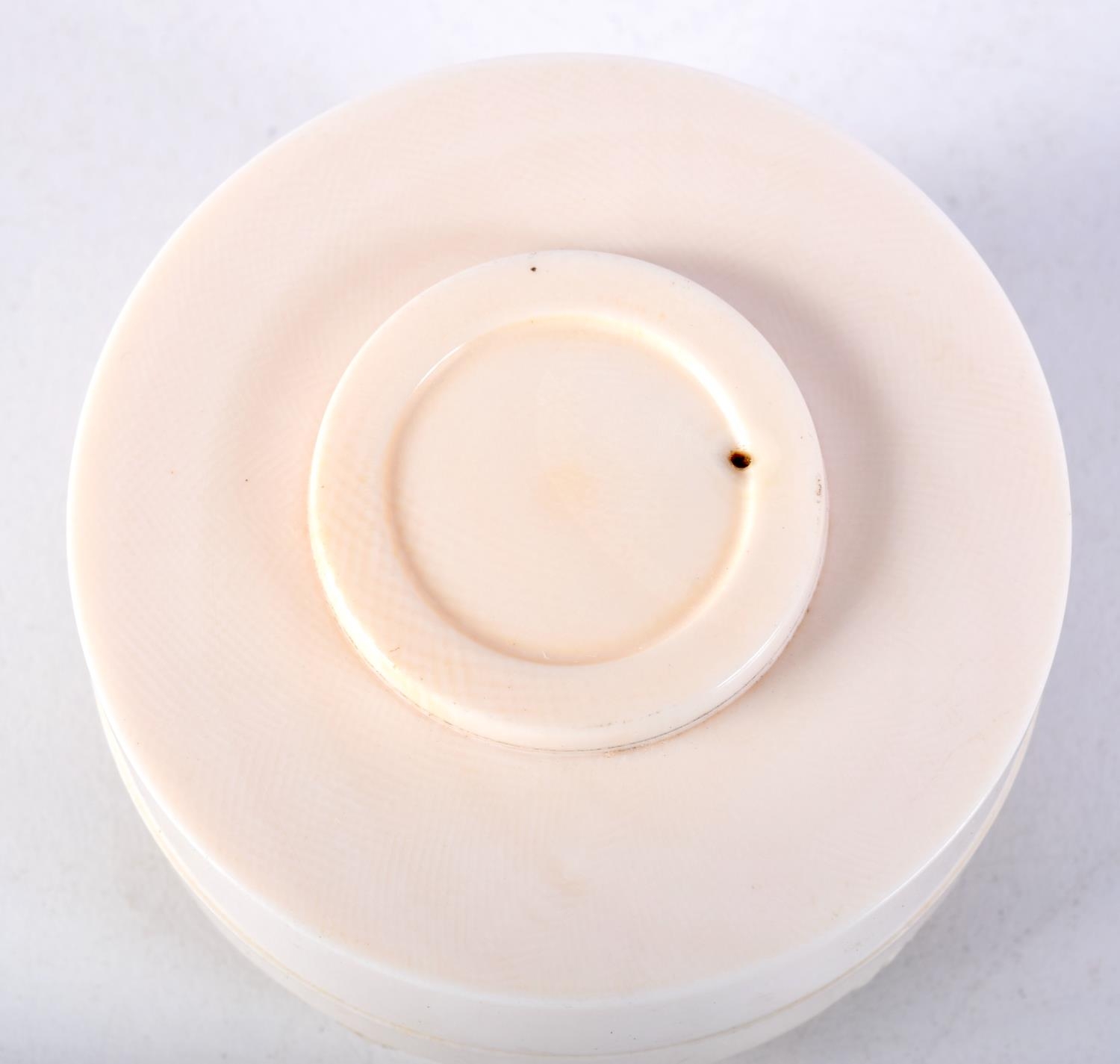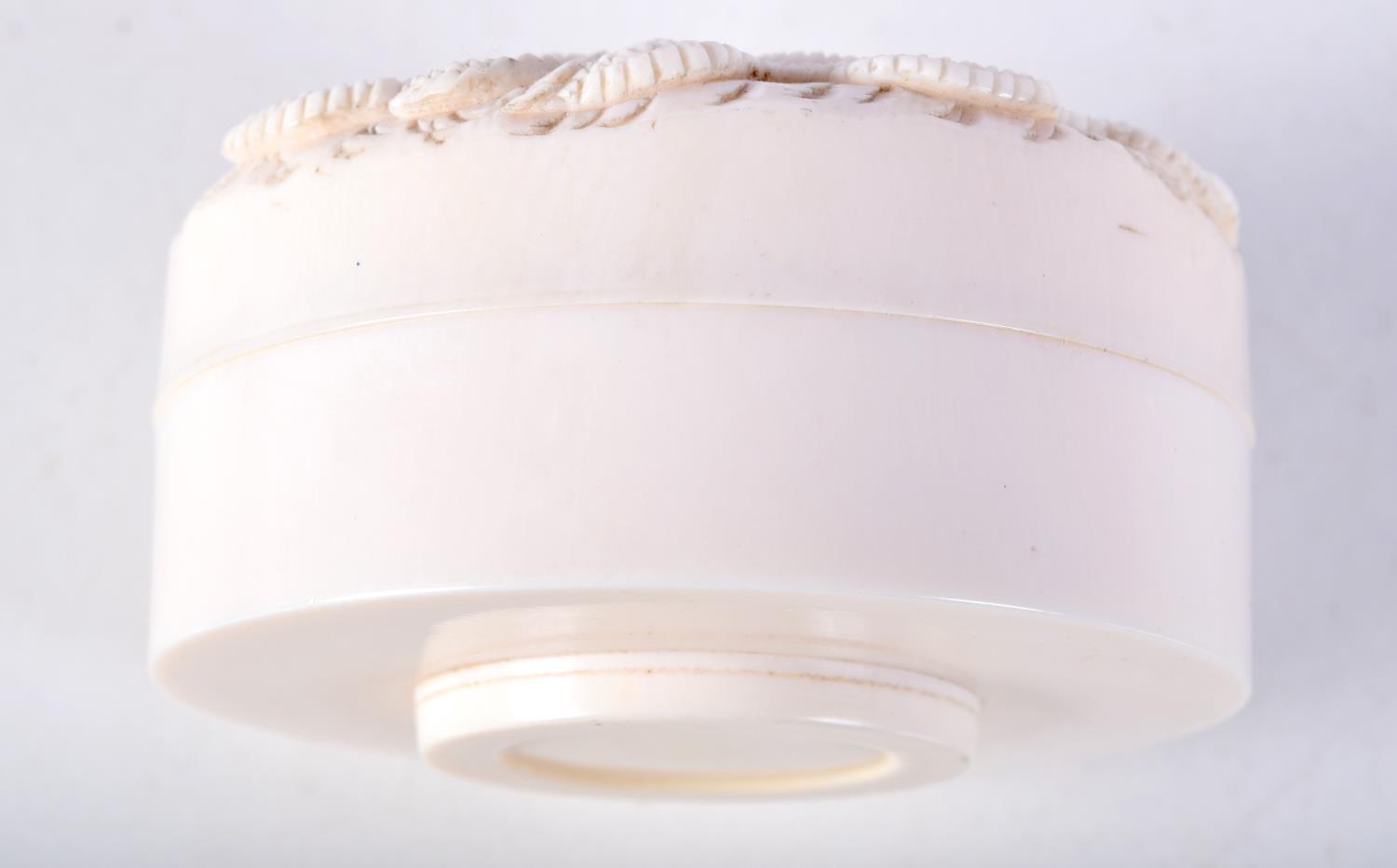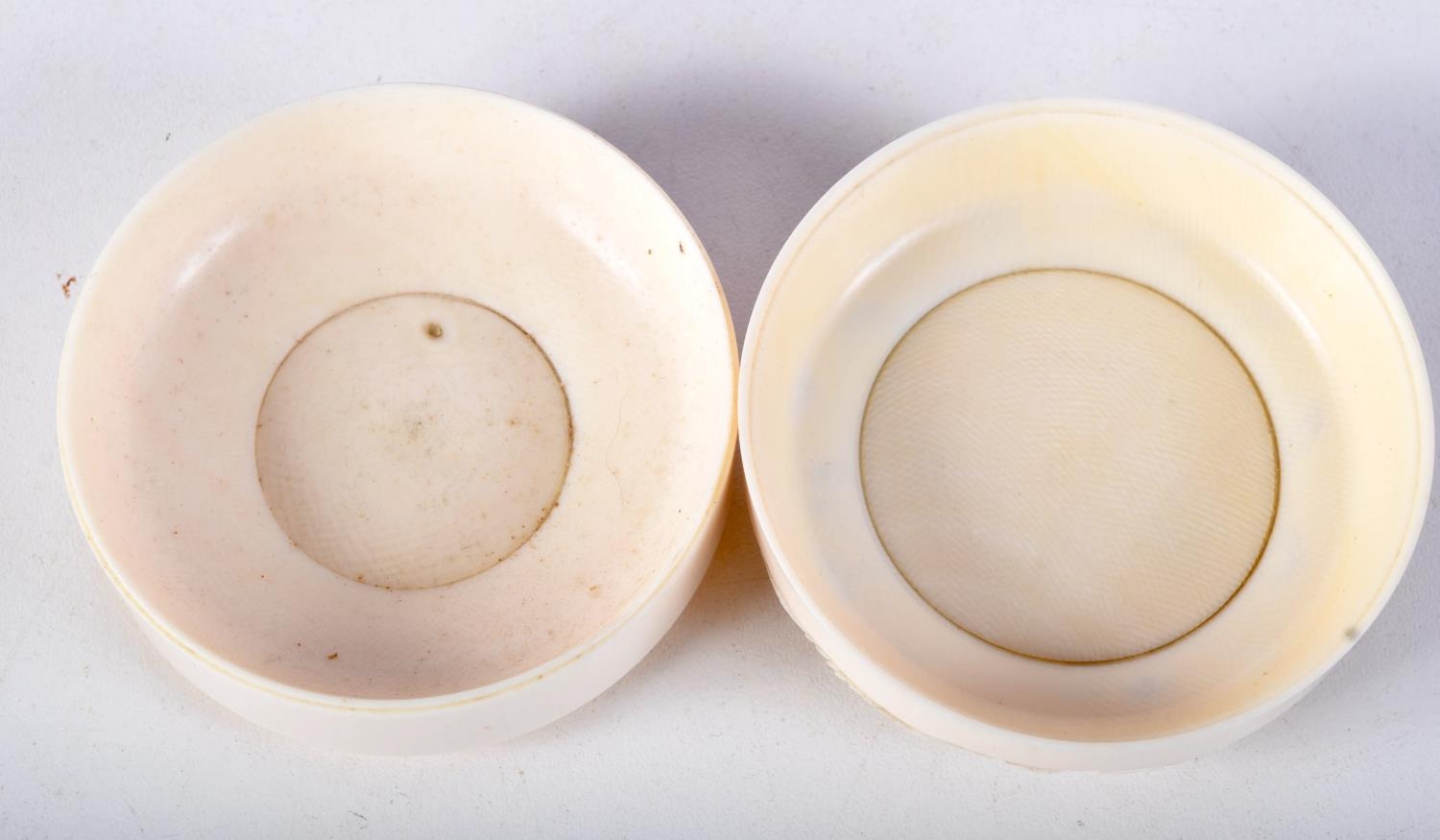 A 19TH CENTURY JAPANESE MEIJI PERIOD CARVED IVORY BOX AND COVER decorated with dragons. 7 cm diameter.
