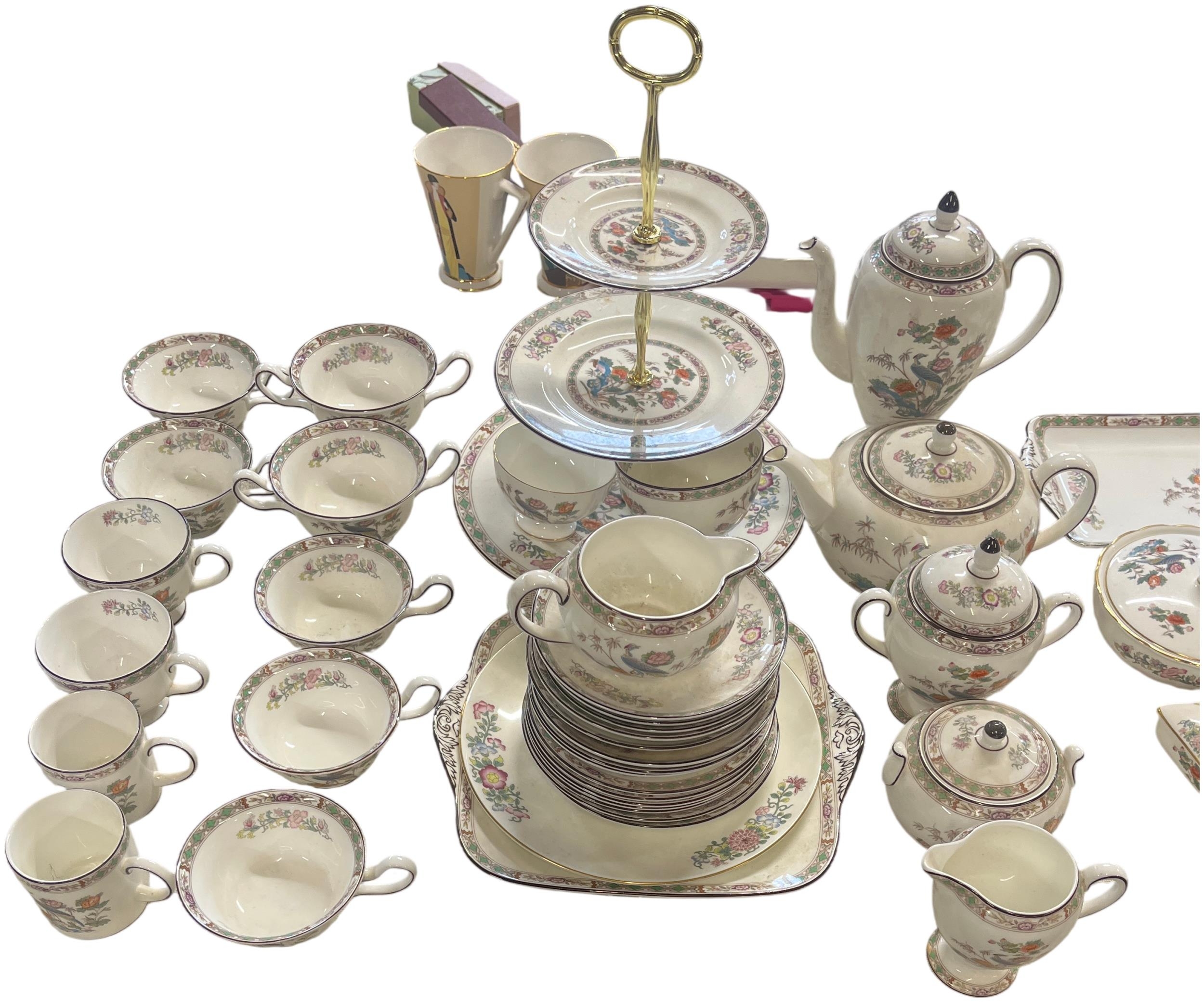 A Wedgwood Kutani Crane pattern bone china tea and coffee service. Approx 37 pieces. No shipping.