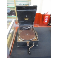 A vintage National Band portable gramophone together with a large assortment of 78rpm records in fitted case