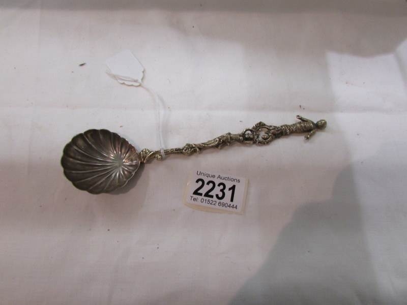 A decorative spoon with figure finial.