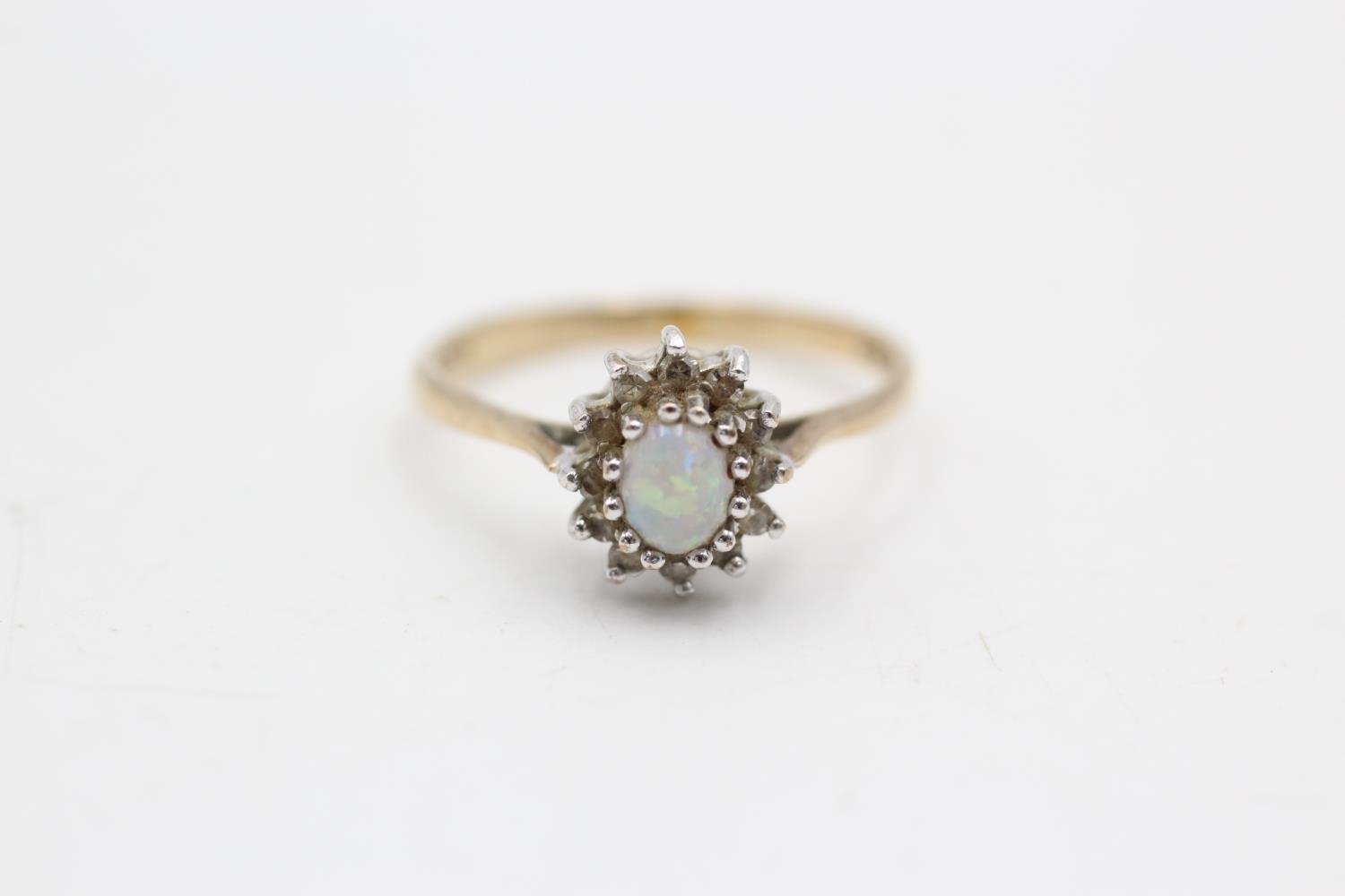 9ct gold vintage diamond & opal halo ring (1.6g) Size N