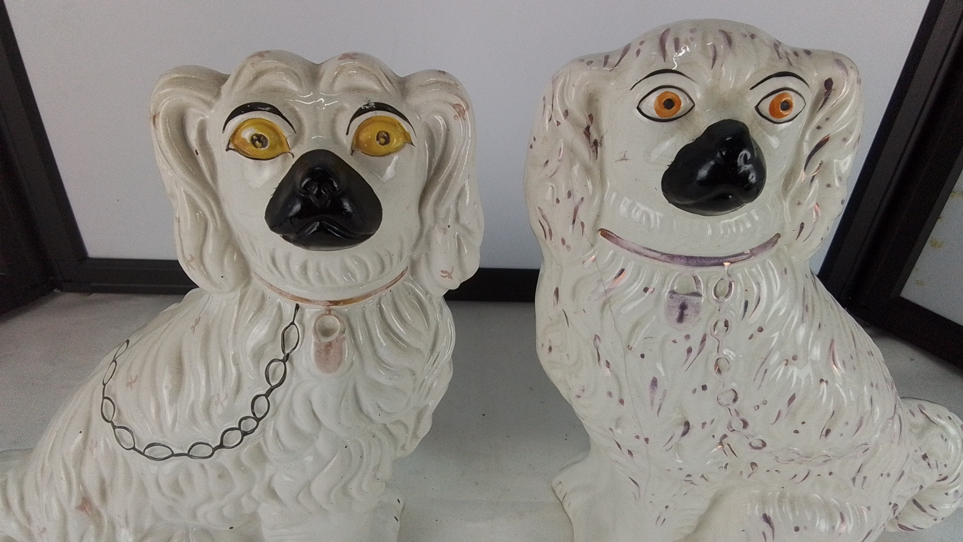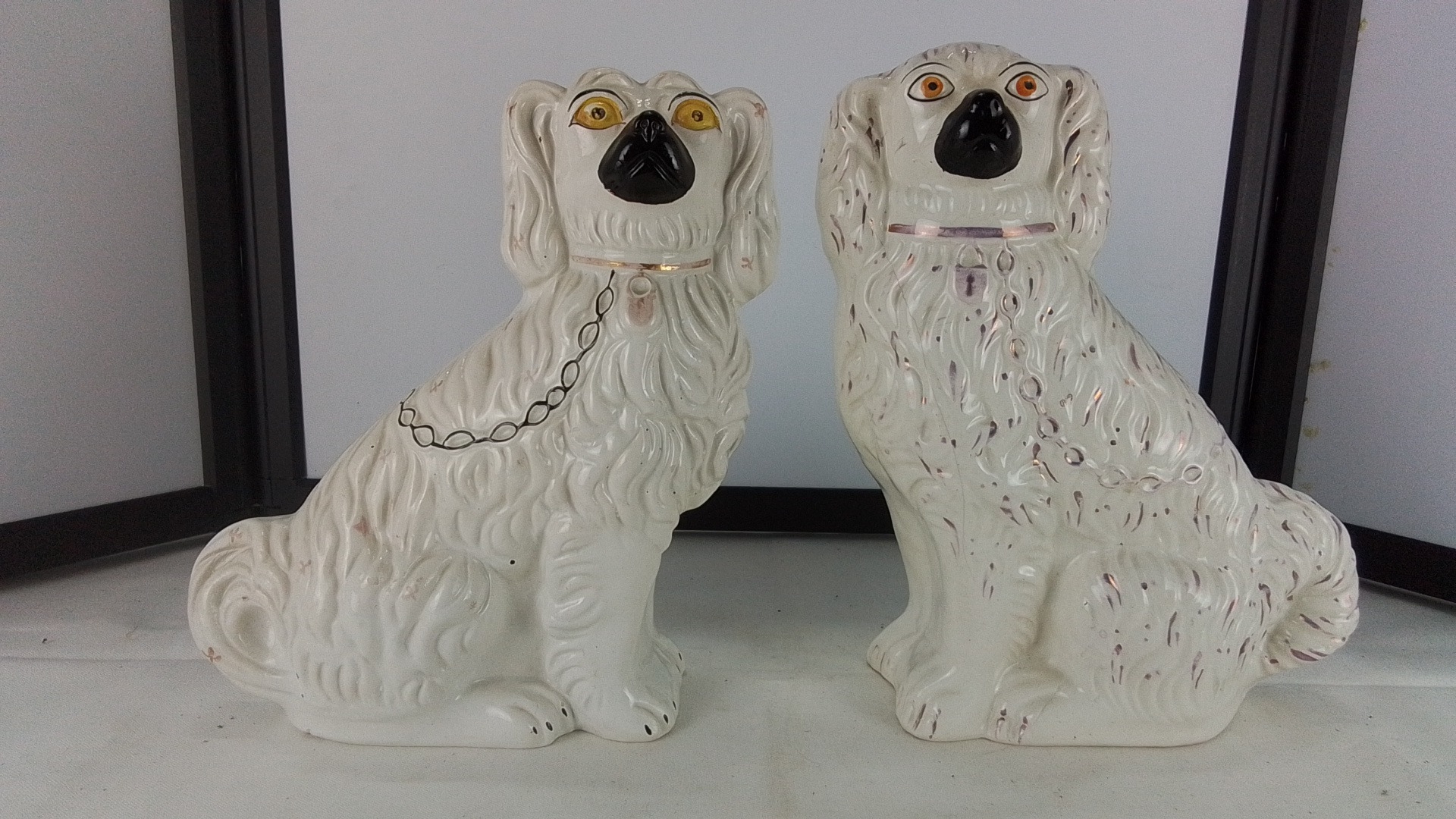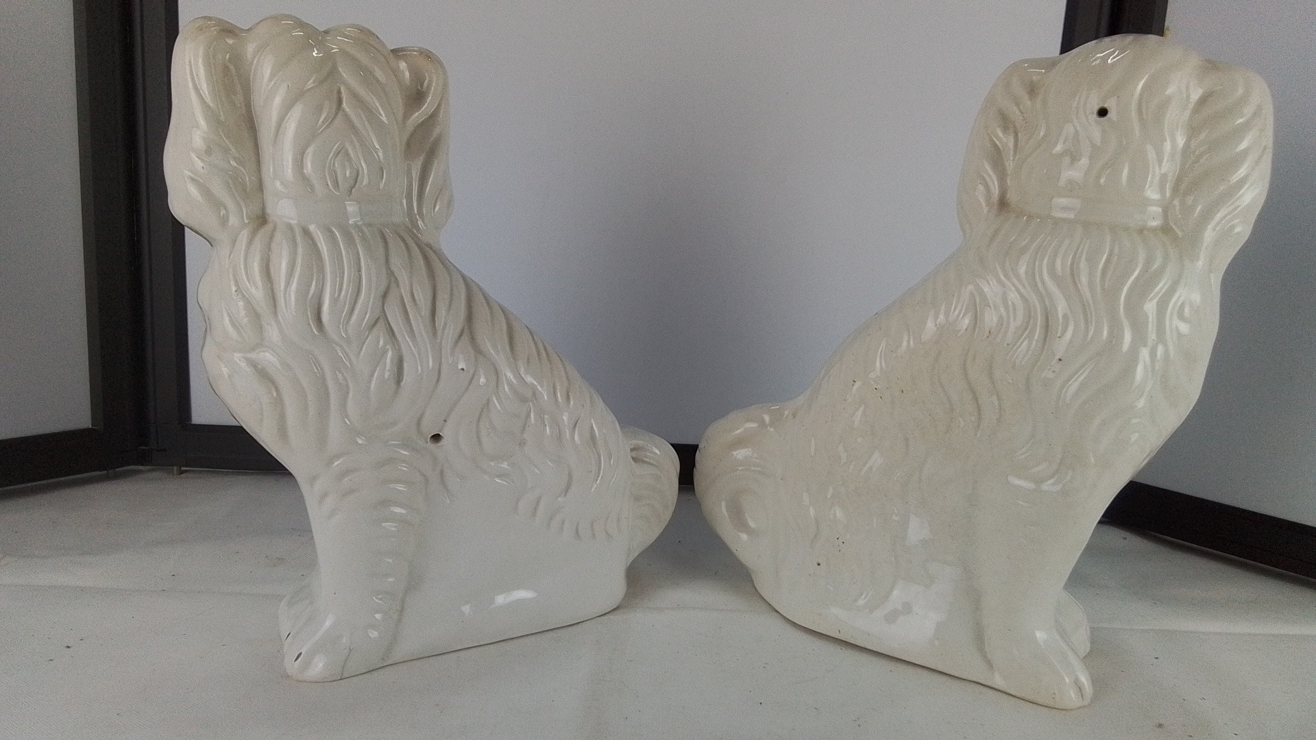 Pair of vintage glazed ceramic spaniel mantle figures.