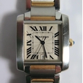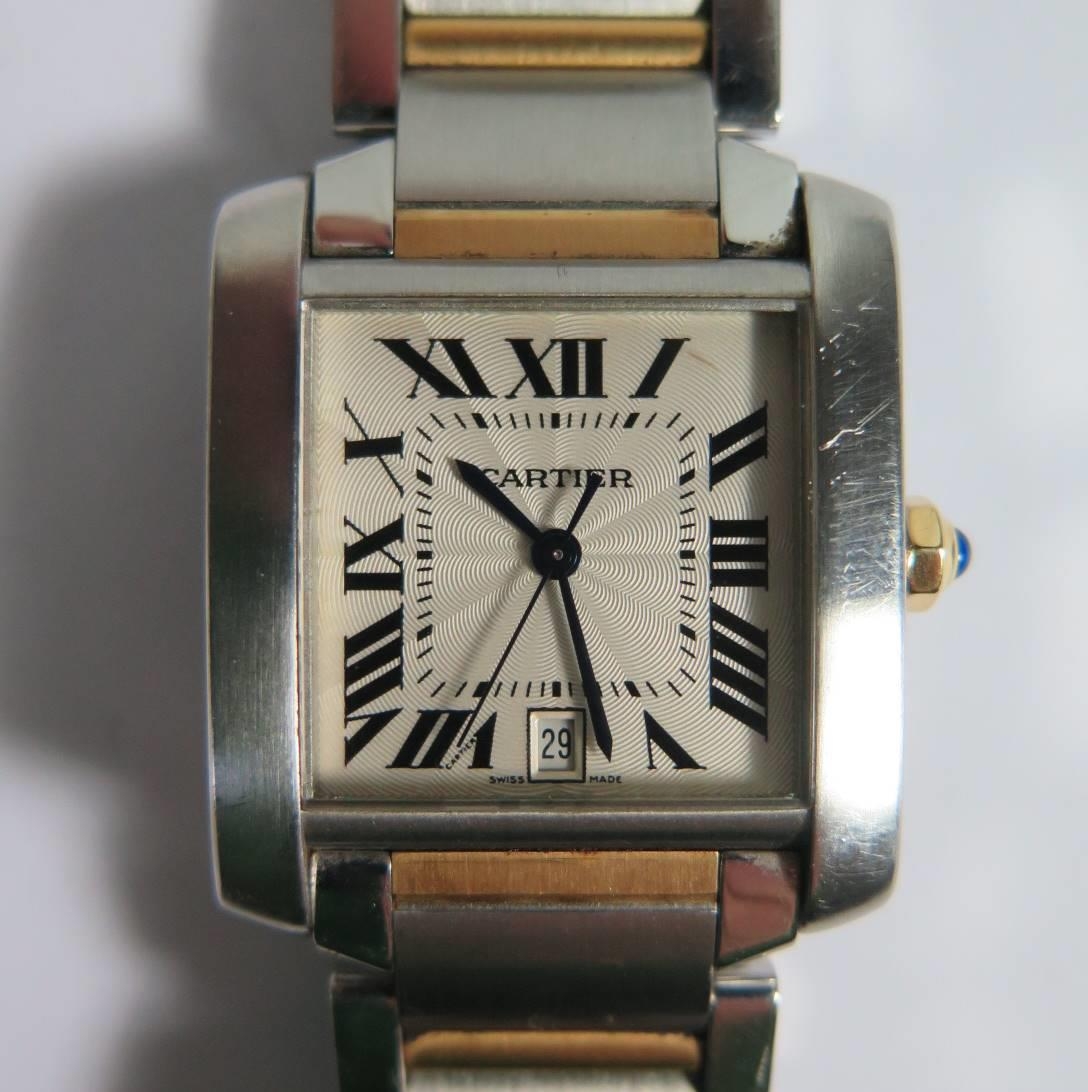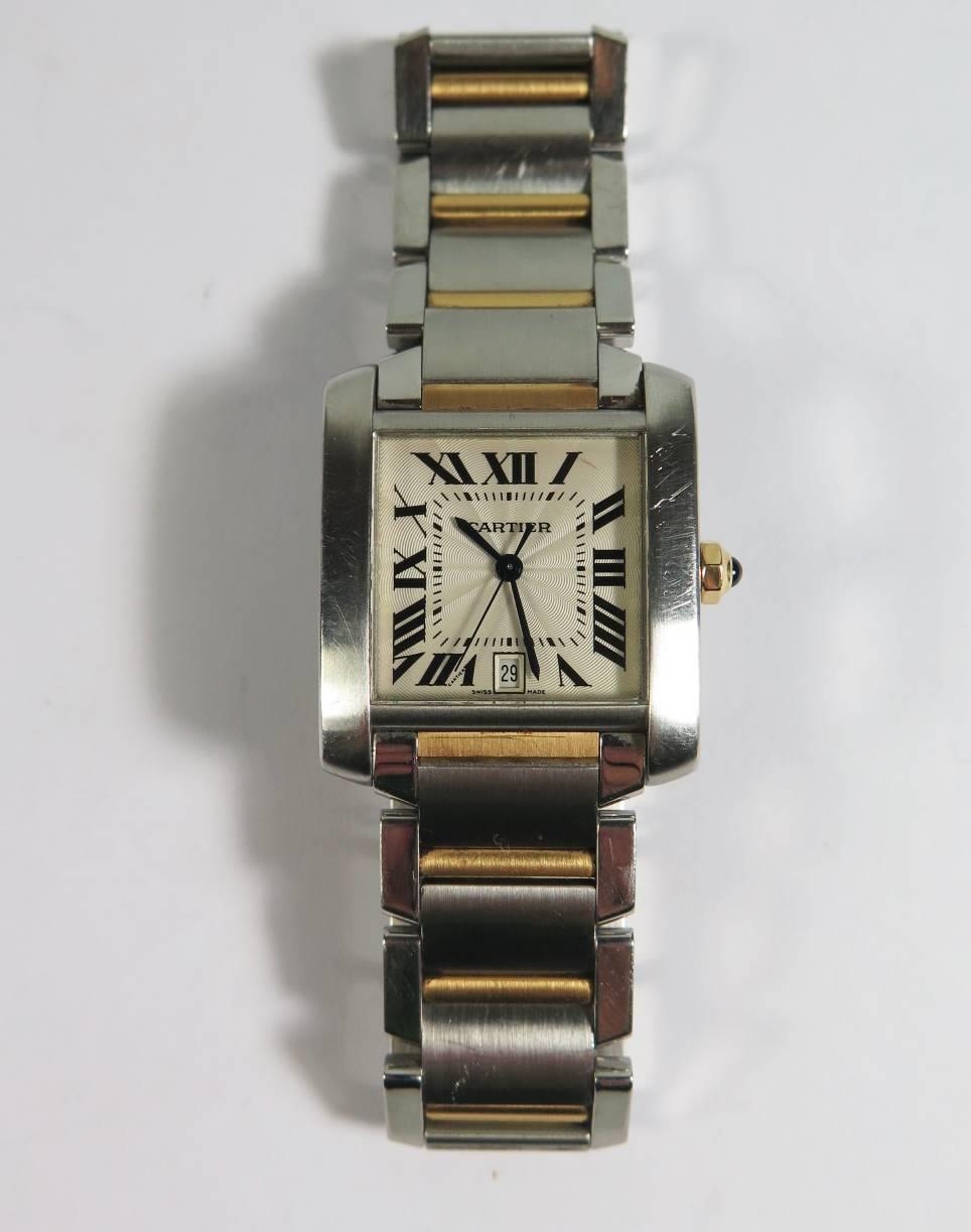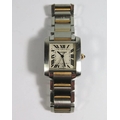 A Gent's Cartier 2302 Tank Wristwatch with gold and steel case with date aperture, case no. 533393CD, boxed and recently serviced