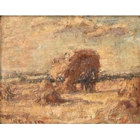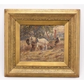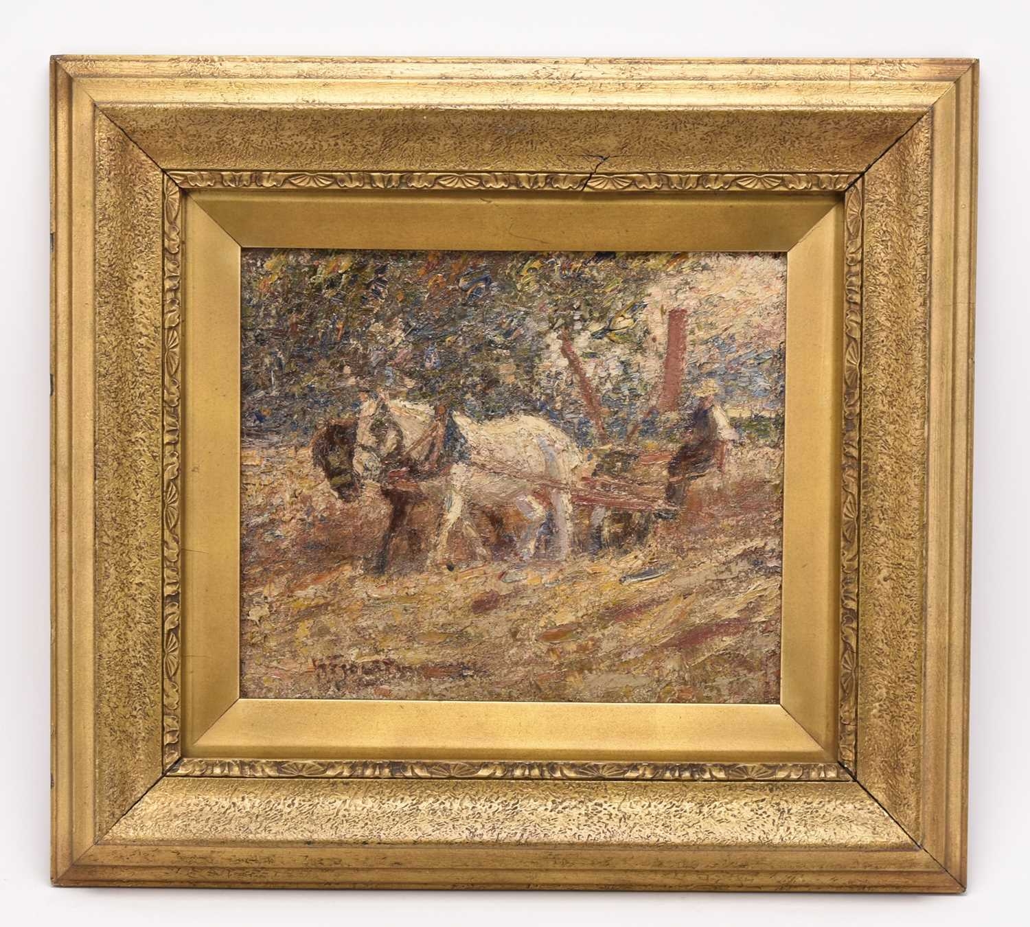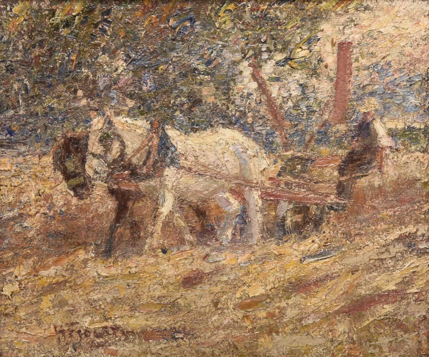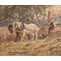 Harry Fidler (1856-1935) Ploughing, two horses drawing a plough in a field, signed lower left, oil on canvas, 17 x 32 cm, frame 47 x 53 cm Provenance: Purchased by the vendor's grandfather in 1918 from H.R. Thompson Fine Art, Tunstall, original receipt dated 24 December 1918