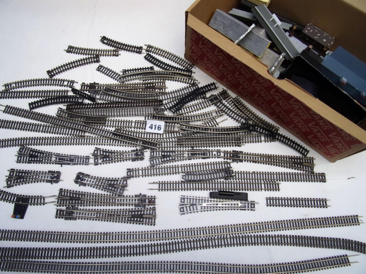 N GAUGE COLLECTION OF SCENIC BUILDINGS TOGETHER WITH A QUANTITY OF N GAUGE RAILWAY TRACK INCLUDING SEVERAL POINTS