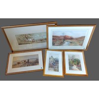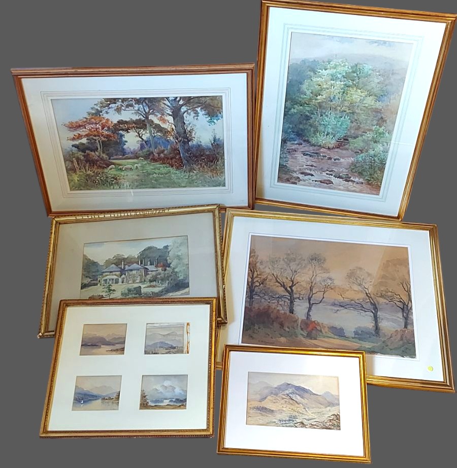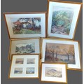 Edith Giffard Houseman, rural scene with figure on a track together with five other watercolours
