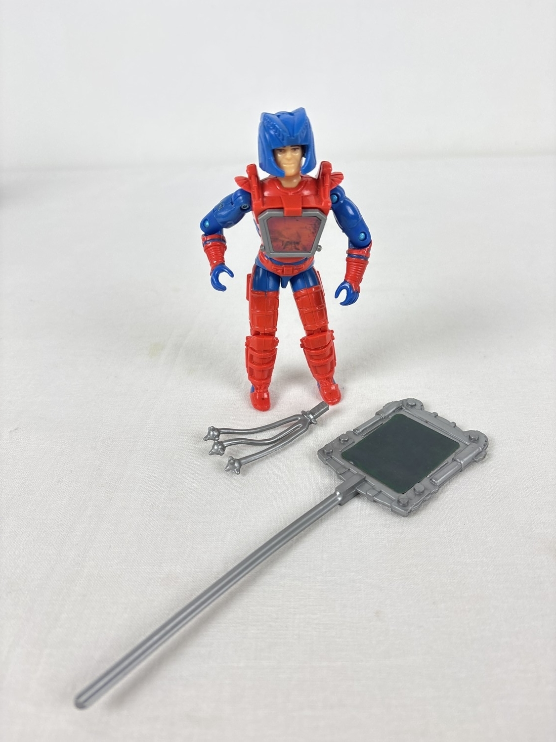 Visionaries: Knights of the Magical Light, vintage Spectral Knights action figure Cryotek from Hasbro, 1987. Complete with strengh Holographic Power Staff which manifests as silent archer, triple headed mace weapon and Helmet.