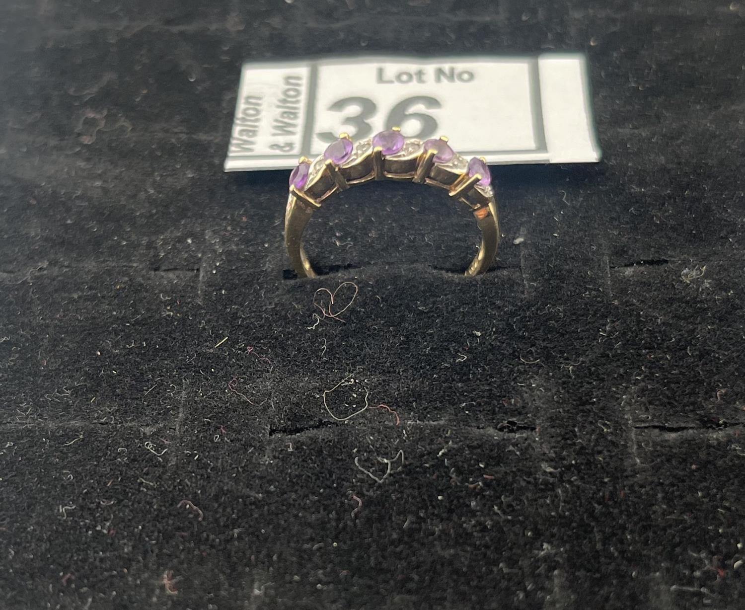 9ct Gold diamond amethyst ring, size O 2.1g - Only 10% buyer's premium