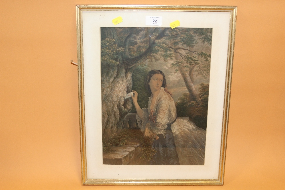 AN ANTIQUE FRAMED & GLAZED BAXTER PRINT ENTITLED THE LOVER'S LETTER 1856