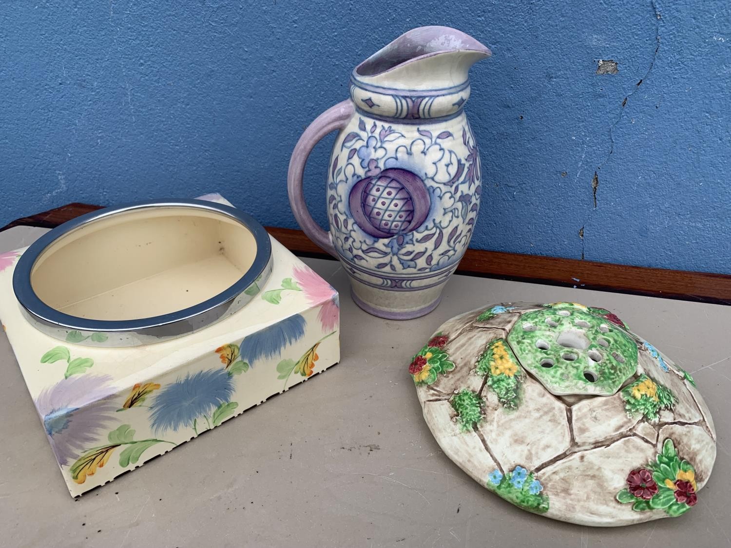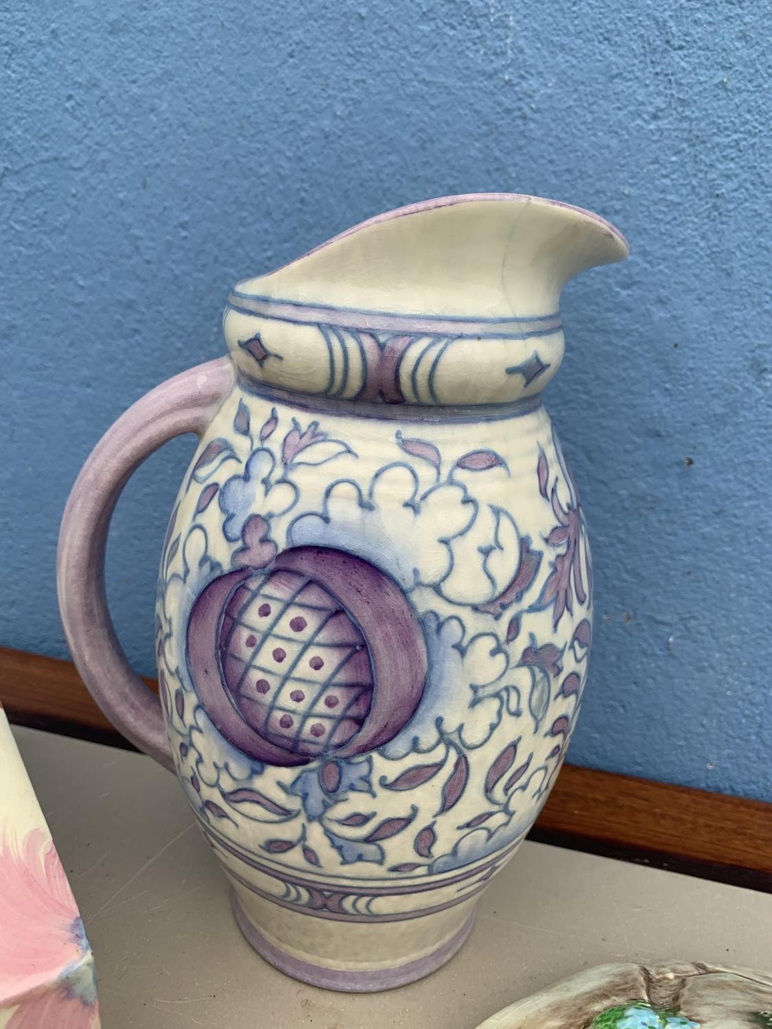 A CHARLOTTE RHEAD JUG AND 2 ART DECO VASE