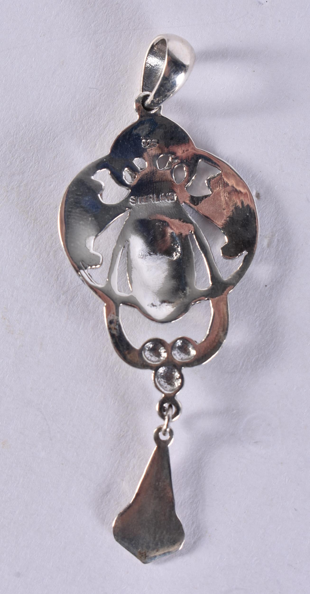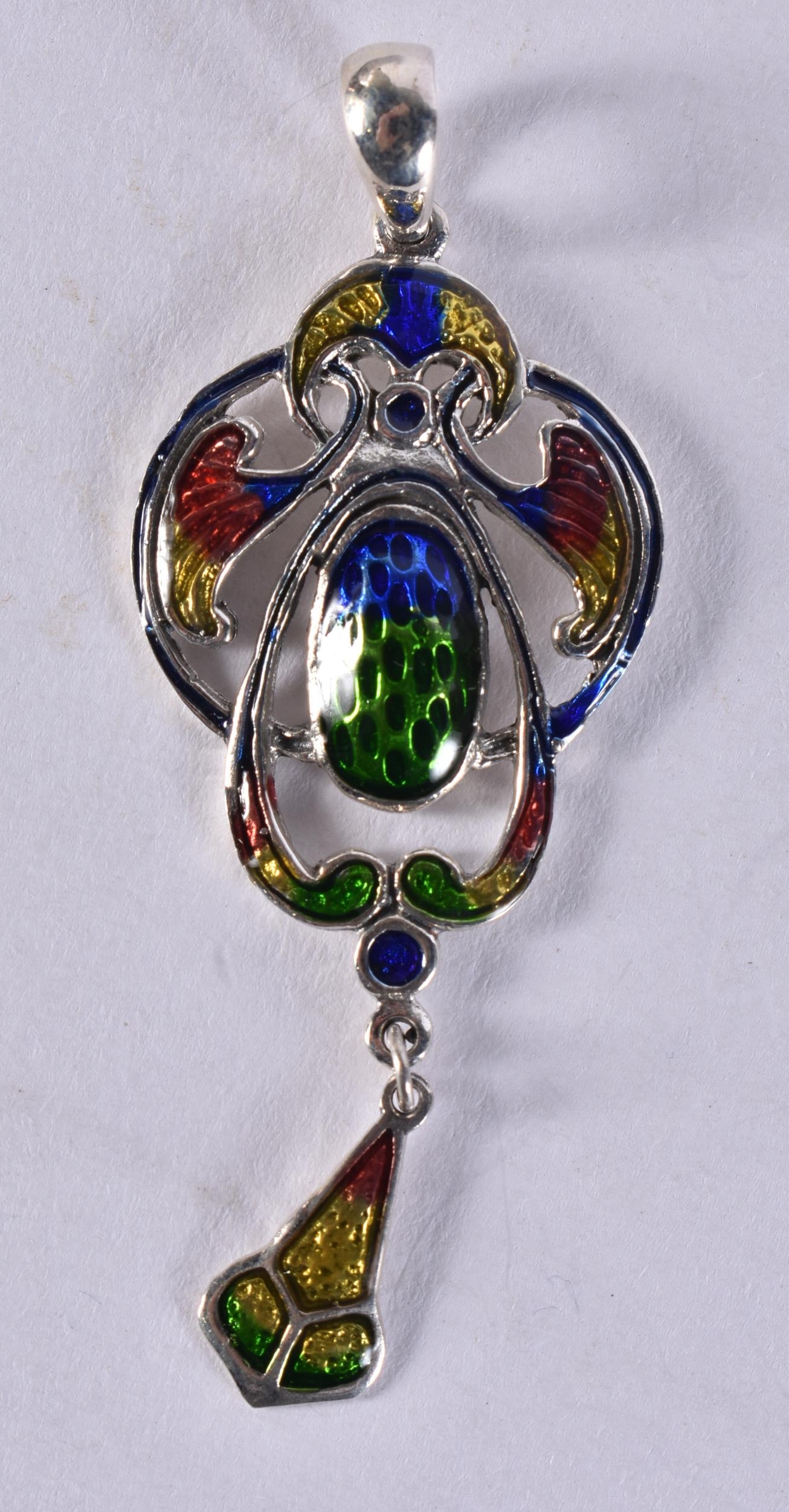 A SILVER AND ENAMEL PENDANT. 6.3 grams. 6.5 cm x 2.5 cm.