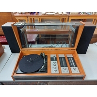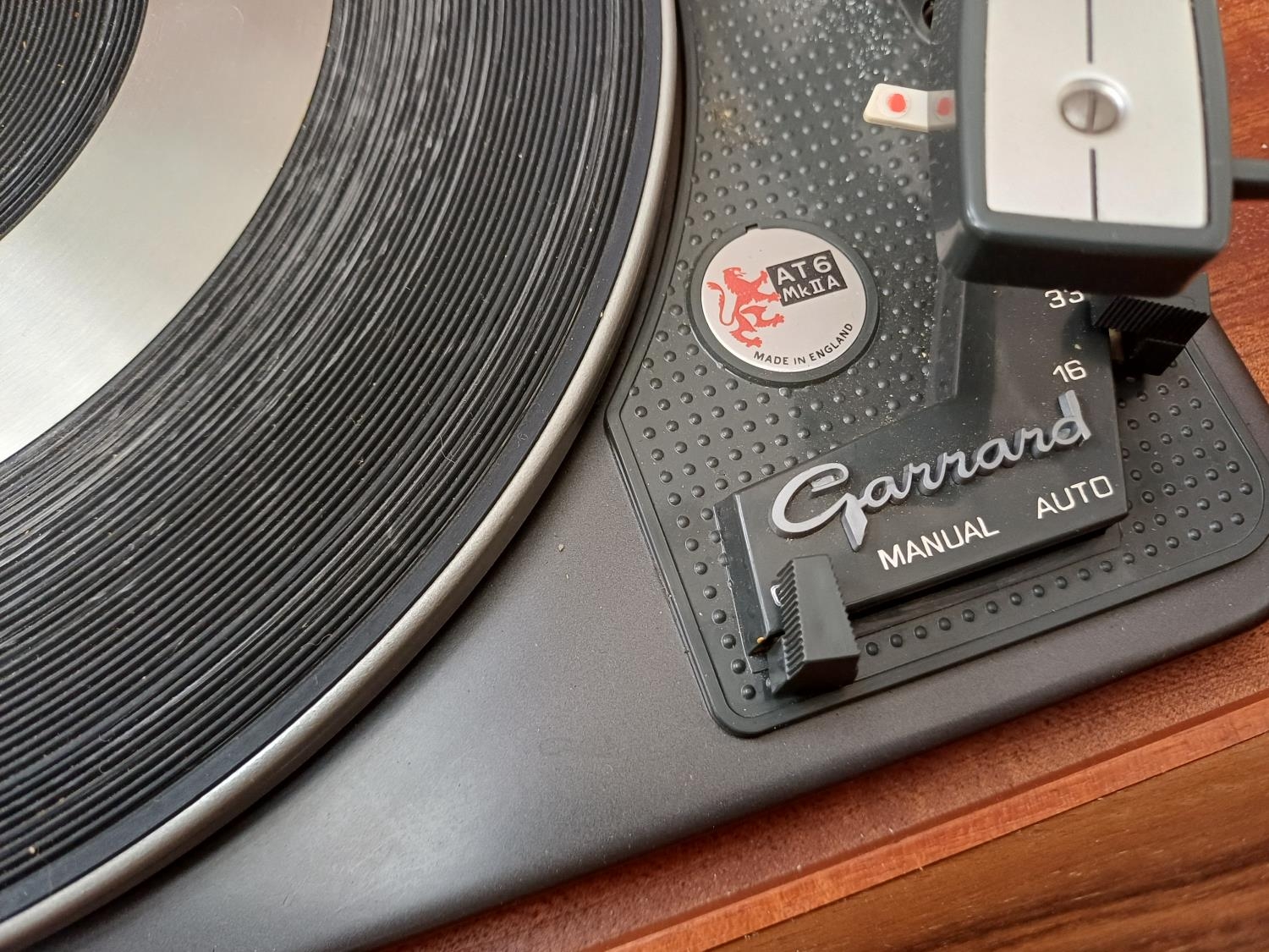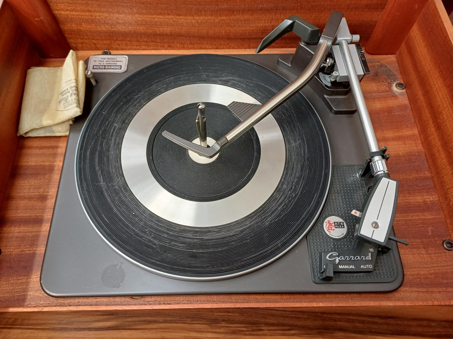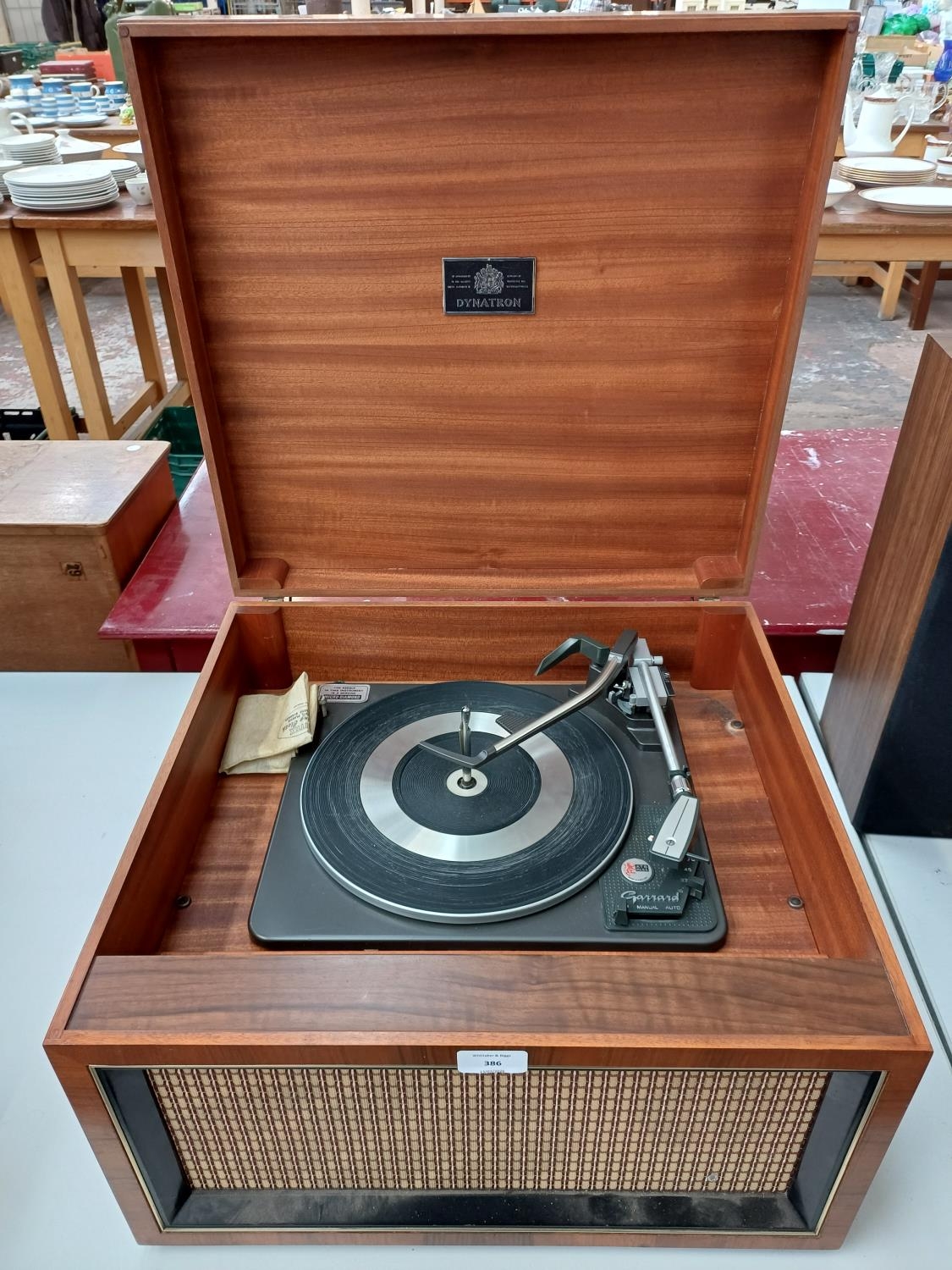 A Dynatron Radio Ltd. record player with Garrard AT6 Mk.IIA four-speed auto-changer turntable