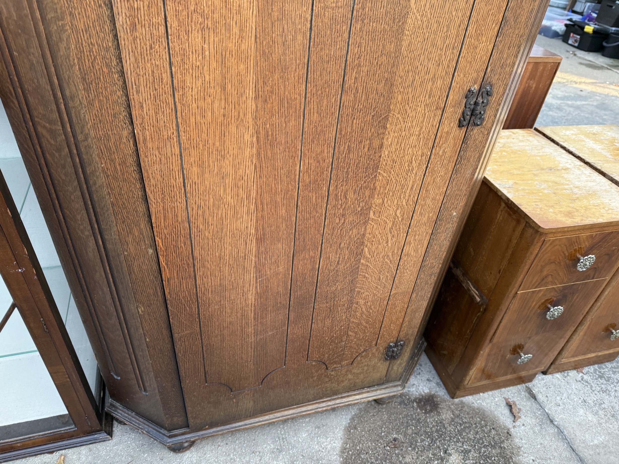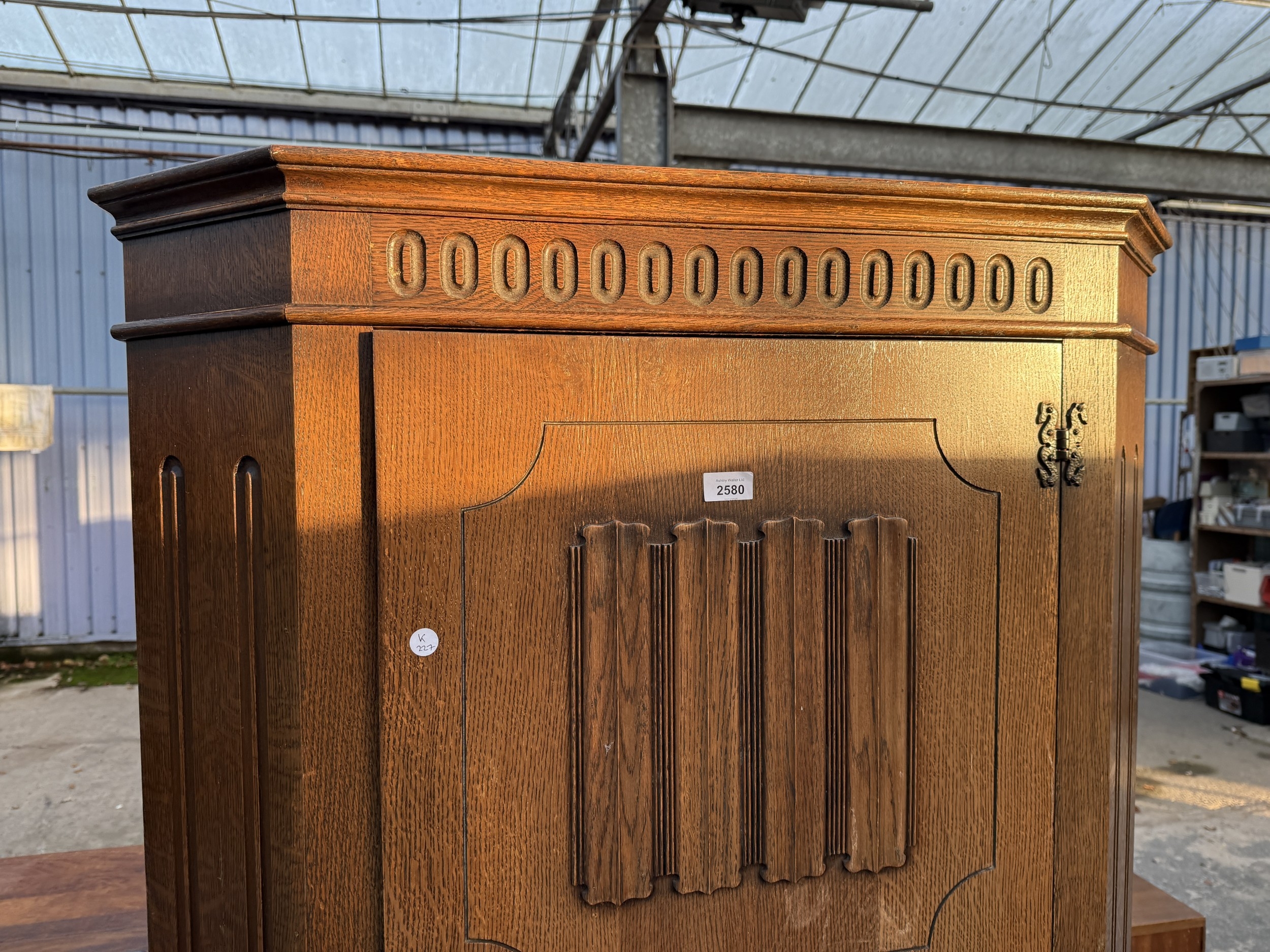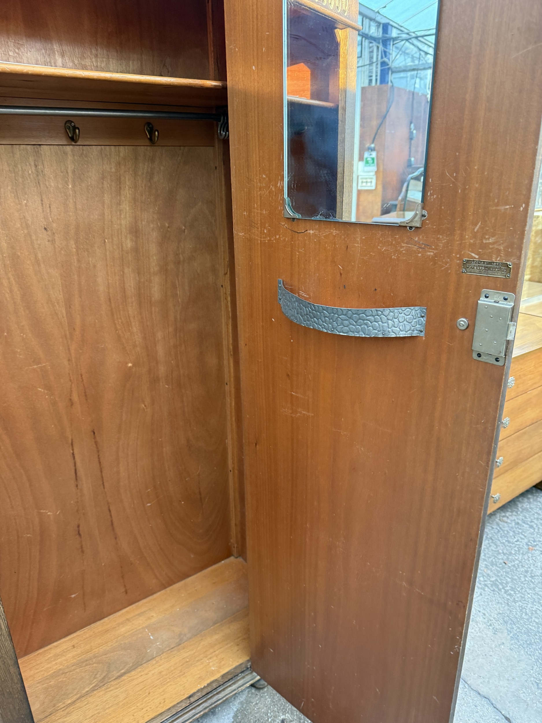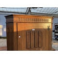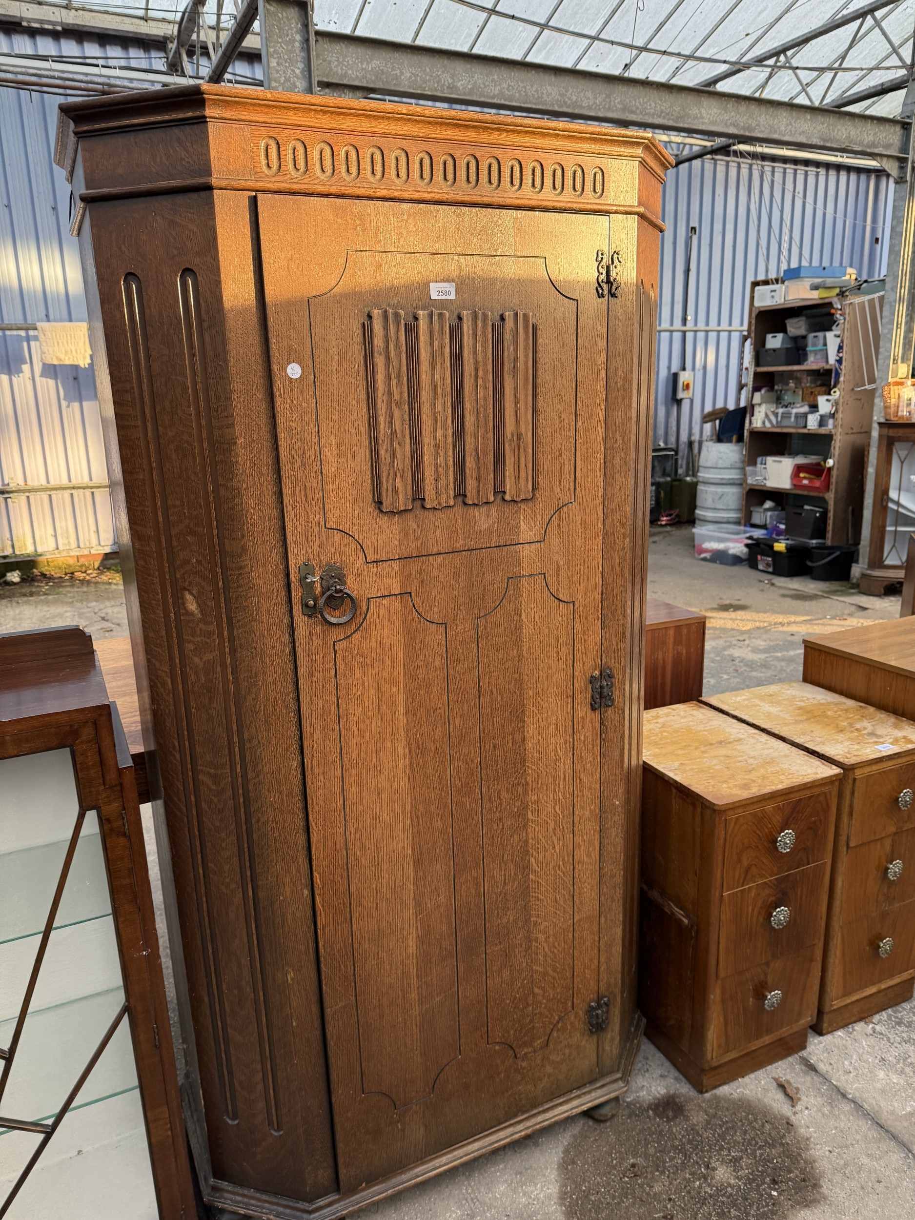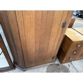 A MID 20TH CENTURY OAK HALL WARDROBE WITH LINEN FOLD DOOR AND INTERNAL MIRROR, 37.5" WIDE