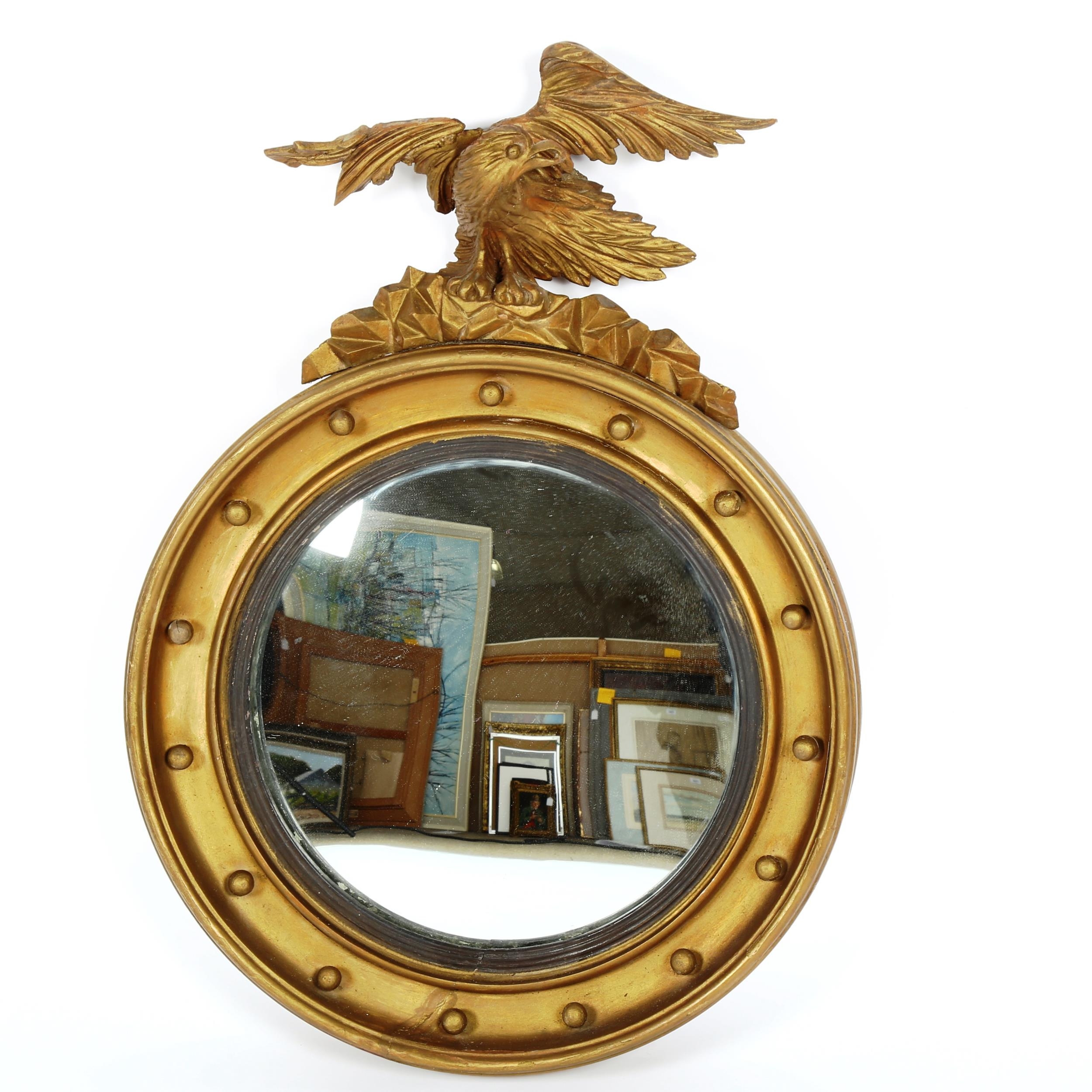 A 19th century giltwood-framed convex wall mirror, surmounted by an eagle, overall height 70cm