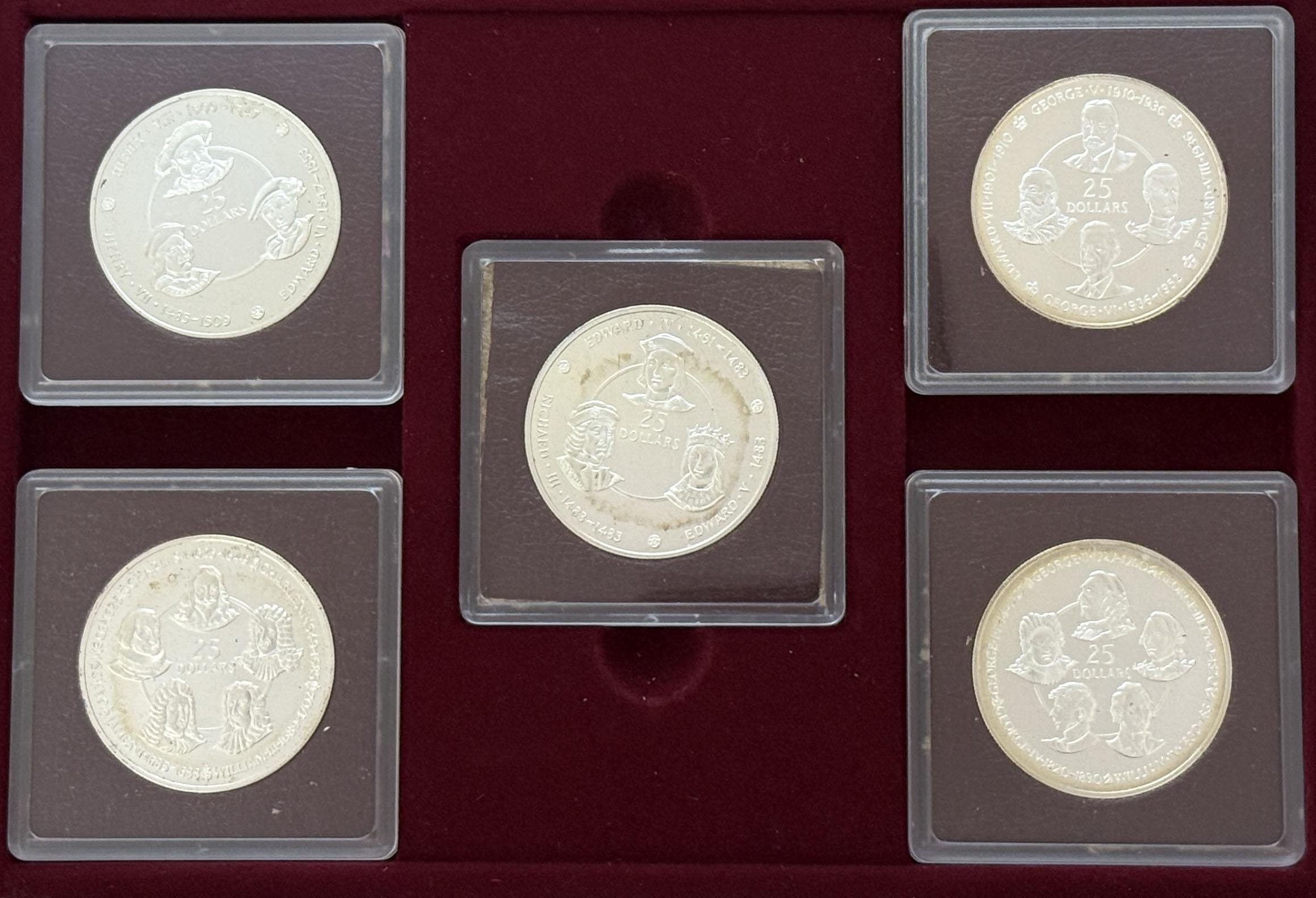 Cayman Islands 1980 The Silver Kings Ten-Coin Collection, comprising of ten $25 Silver coins, total weight 357g (.500), housed in original folder with CoA