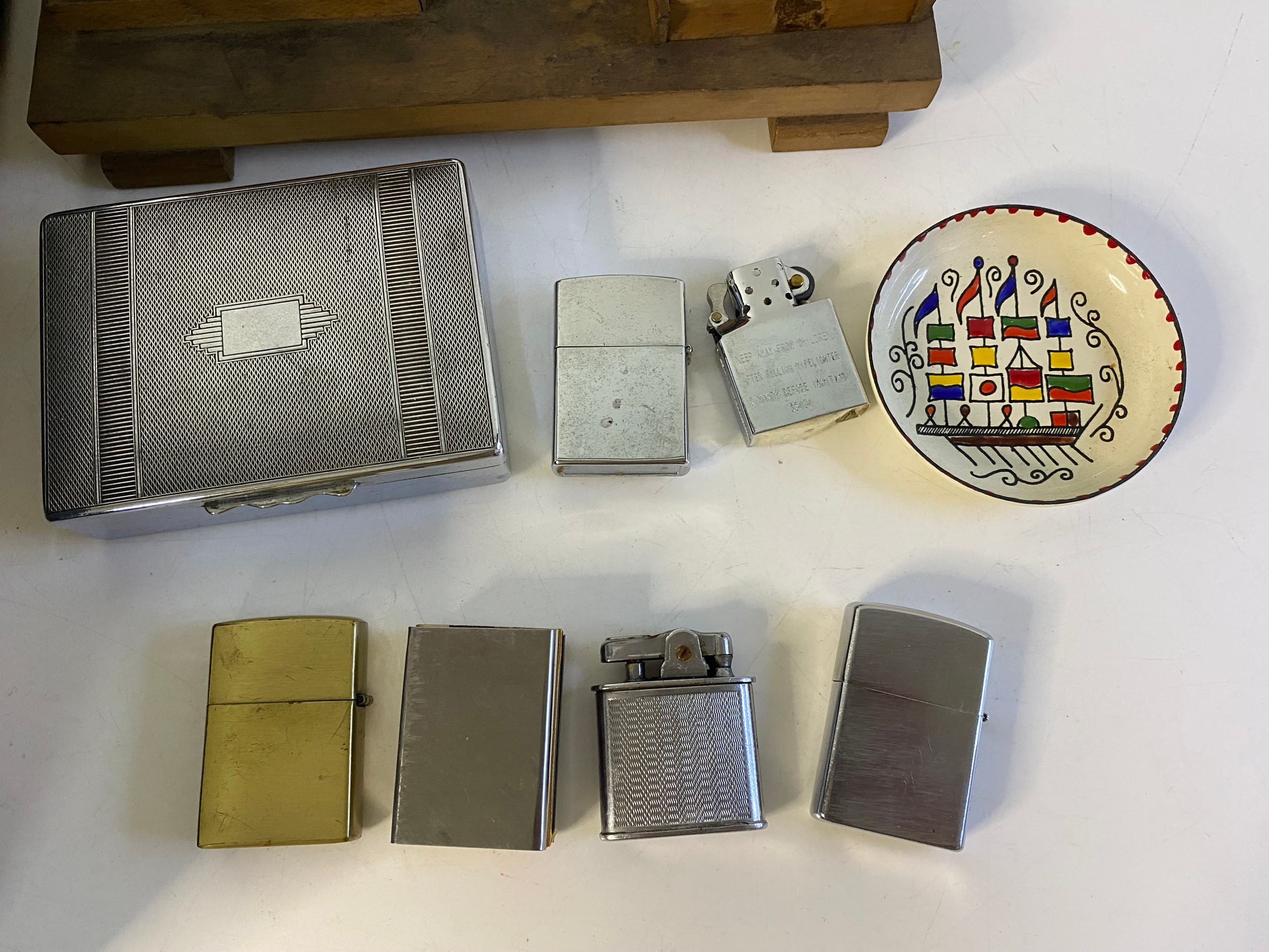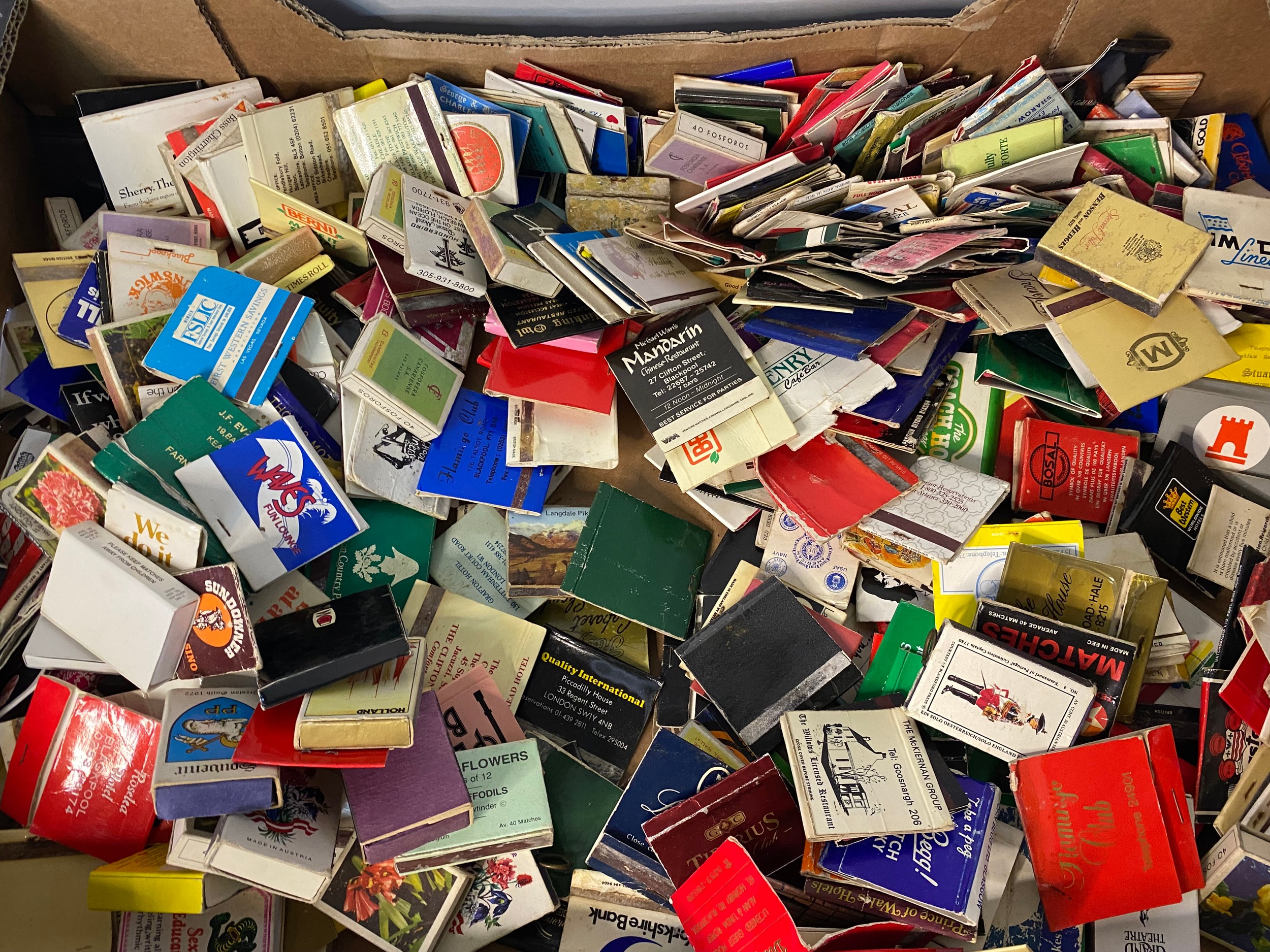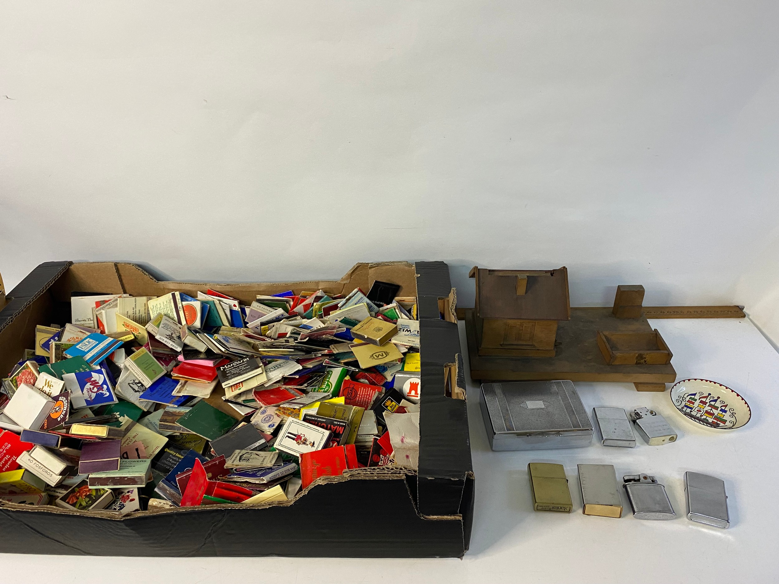 Collection of tobacciana to include cigarette dispenser, matchbox holders, cigarette cases, and hundreds of matchbooks