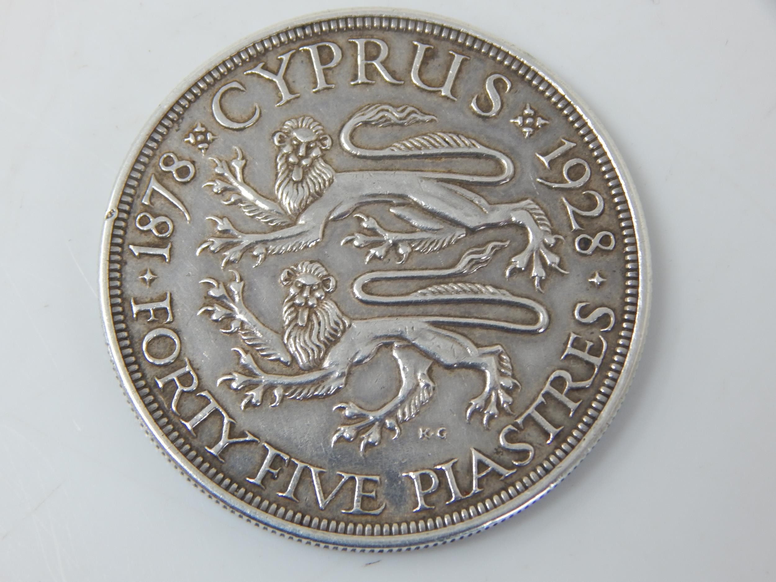 Cyprus Silver 45 Piastres 1928 scarce, signs of historical cleaning, Very Fine or better, scarce