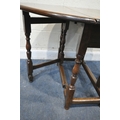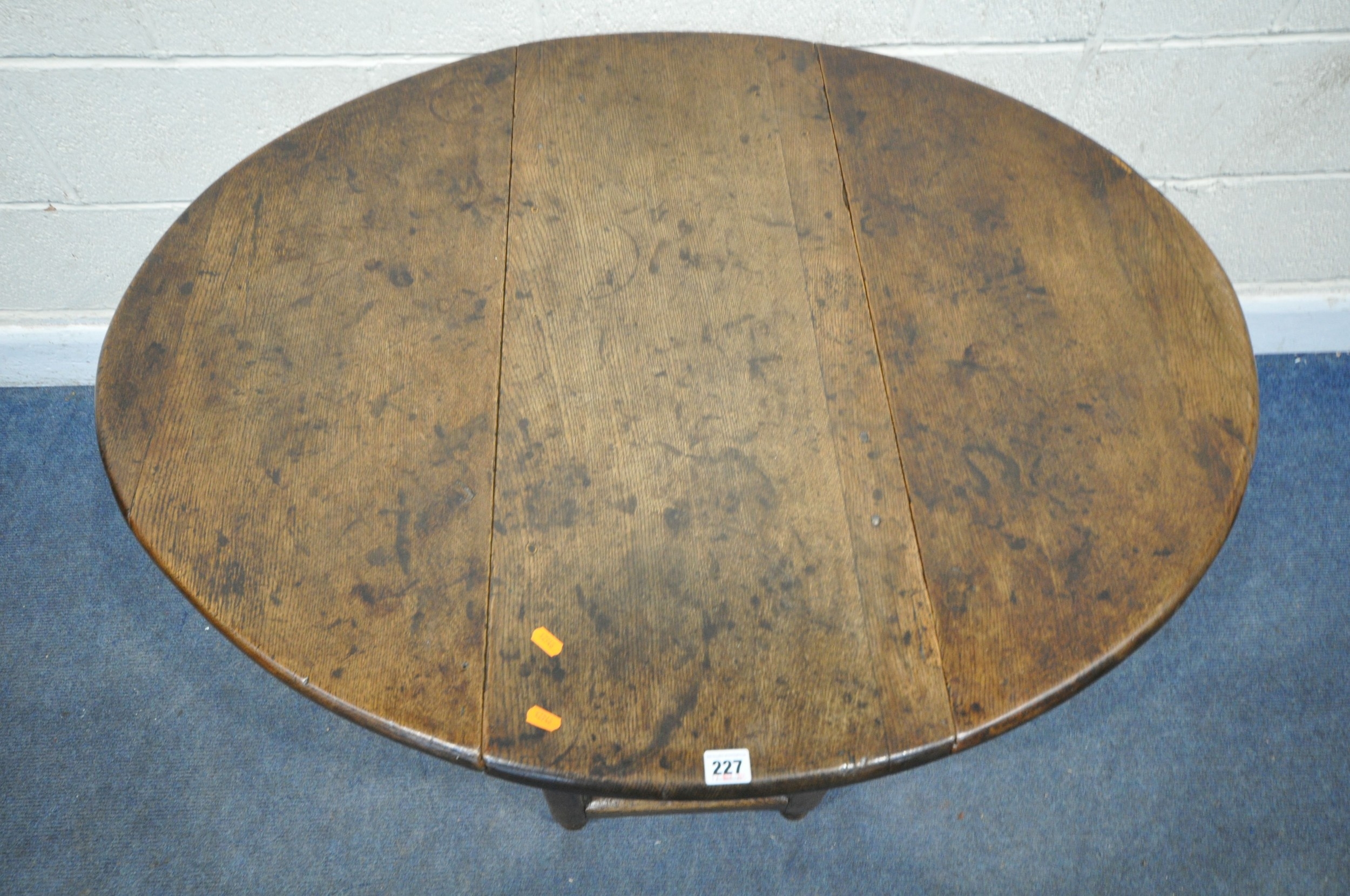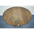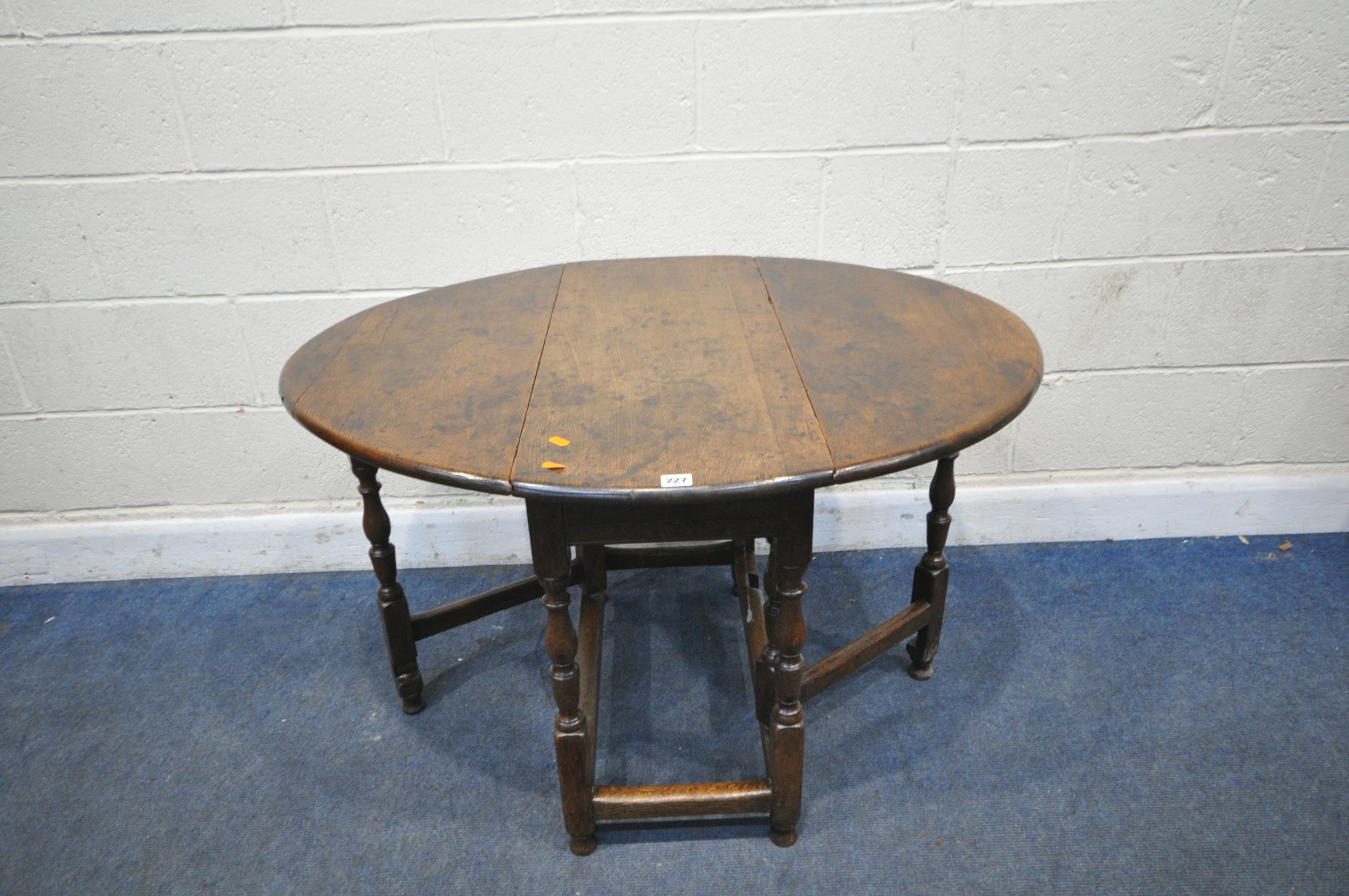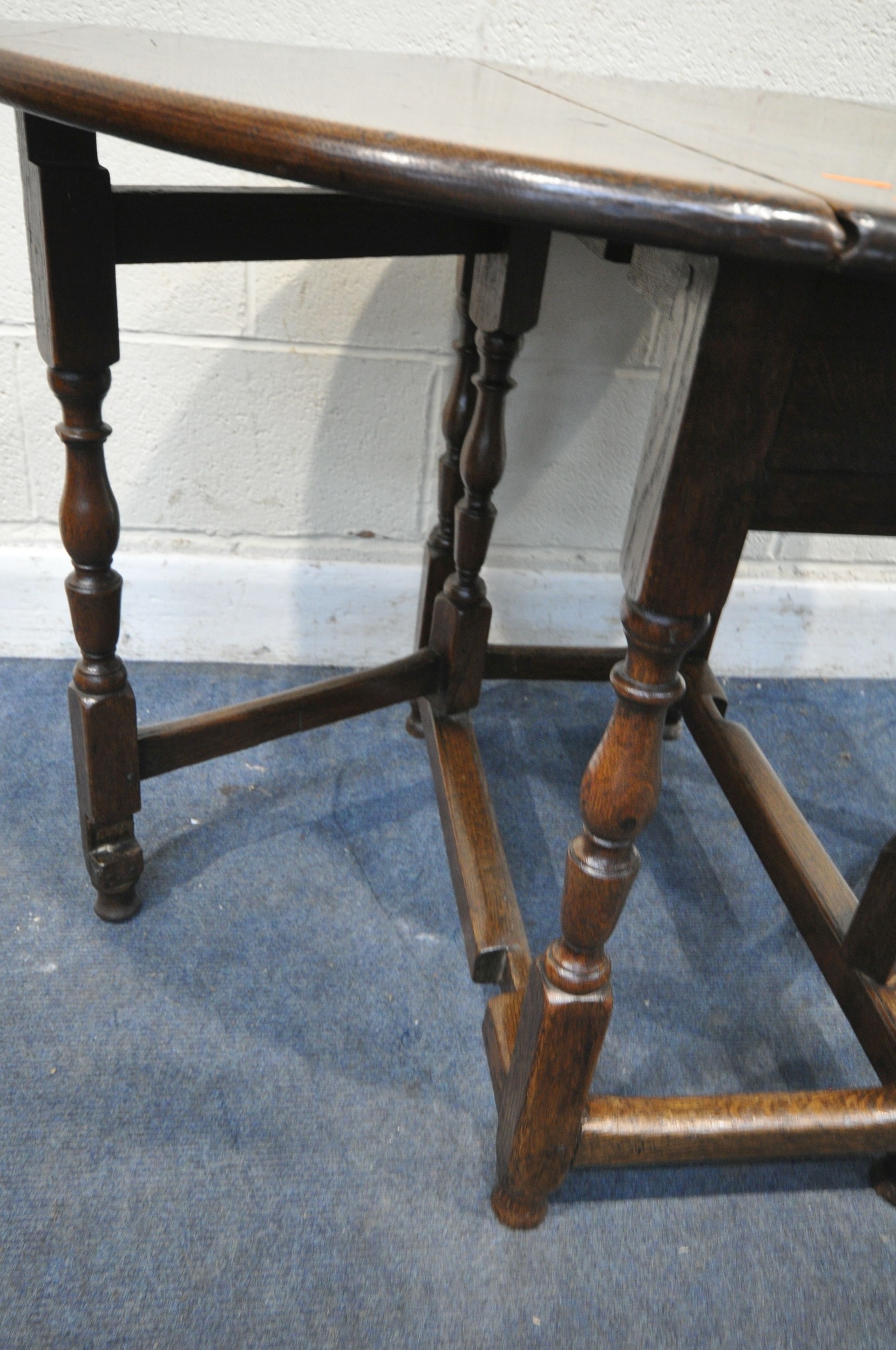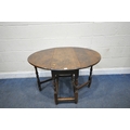 A GEORGIAN OAK GATE LEG TABLE, raised on block and turned legs, open width 105cm x closed width 39cm x depth 87cm x height 68cm, condition report: historical marks, scuffs, stains, discolouration, other wear and usage