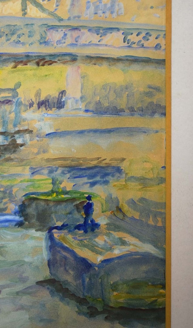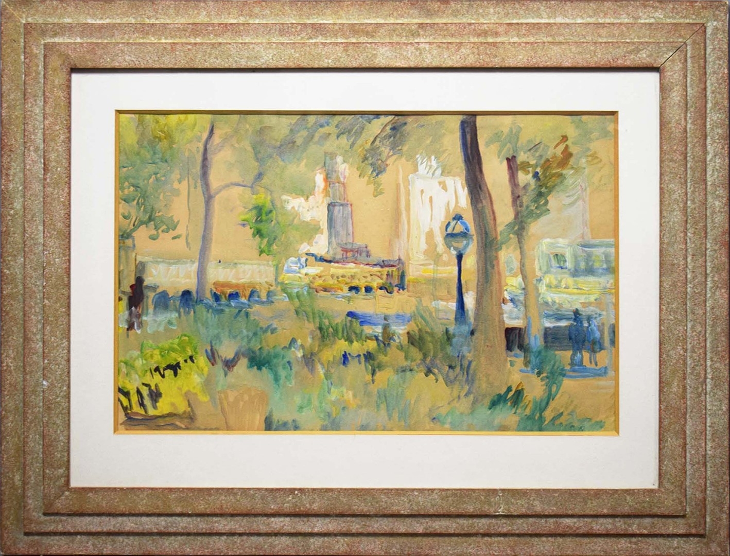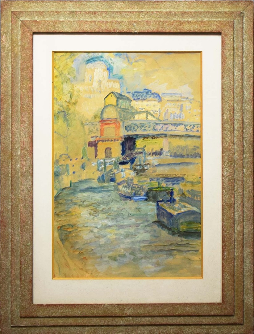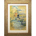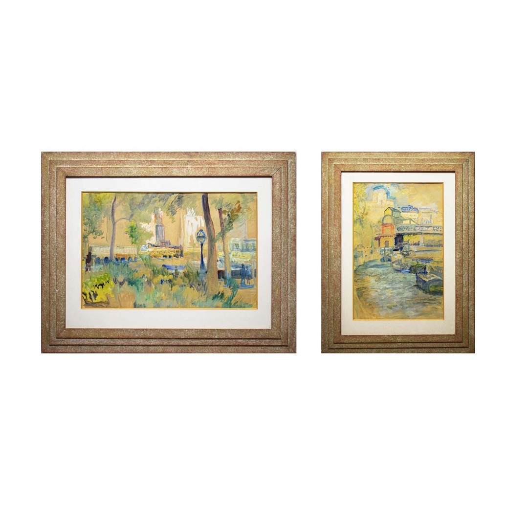20TH CENTRUY SCHOOL. CITY SCENES (2). a pair of watercolours in stepped frames, unsigned, one 79cm x 60cm the other 62cm x 79cm, framed.