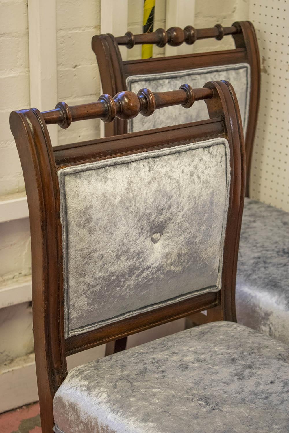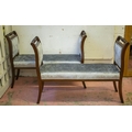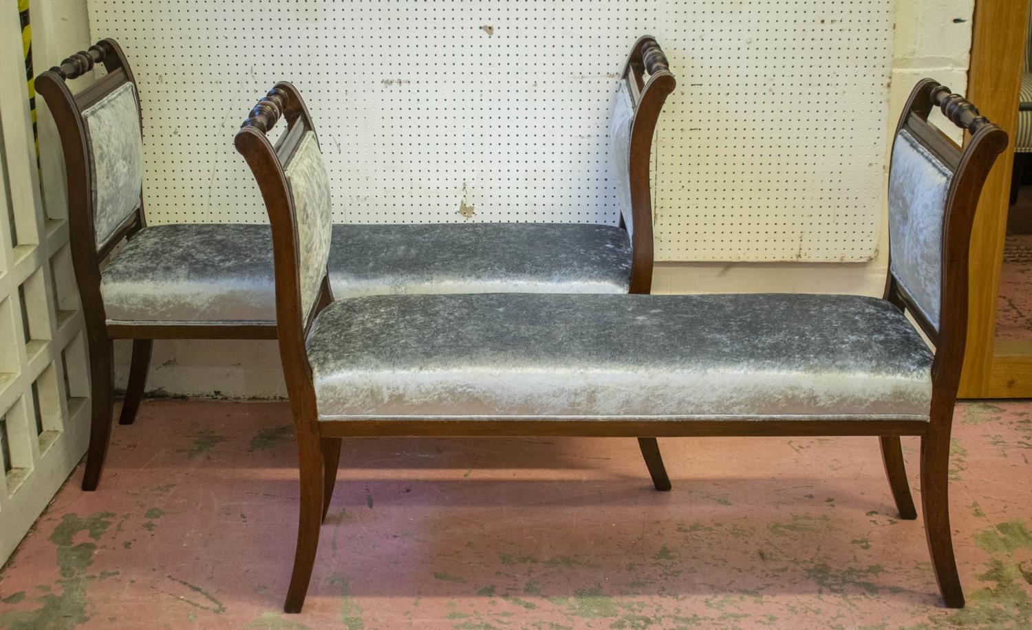 WINDOW SEATS, a pair, part Victorian mahogany, adapted in silvered velvet, 117cm x 41cm. (2)