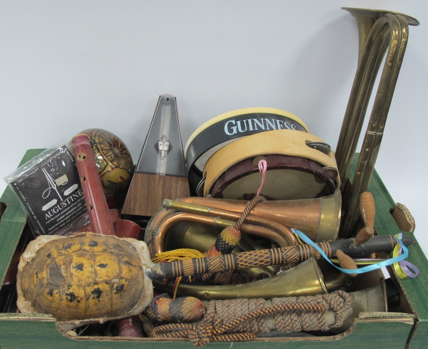 German Metronome, tambourines, trumpets, flute and other musical instruments:- One Box