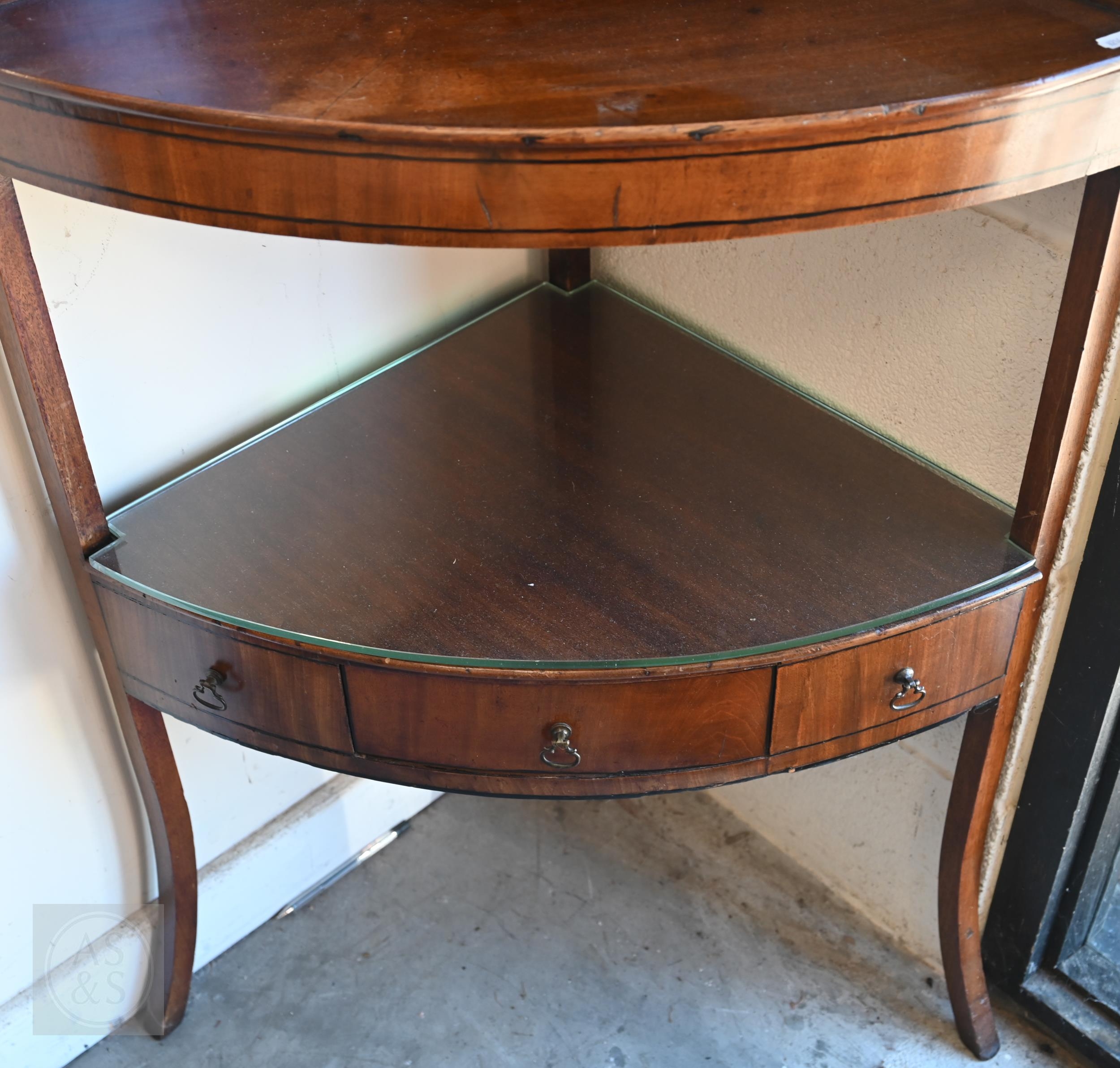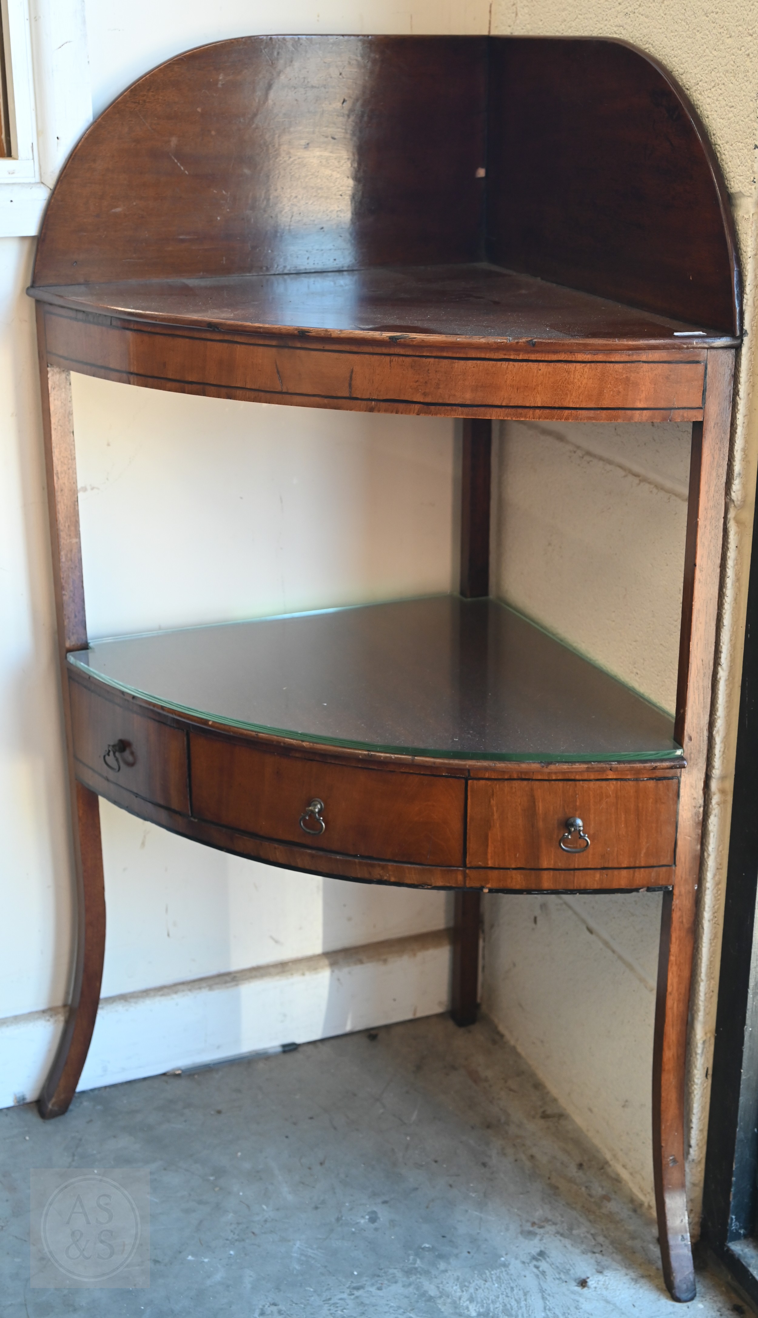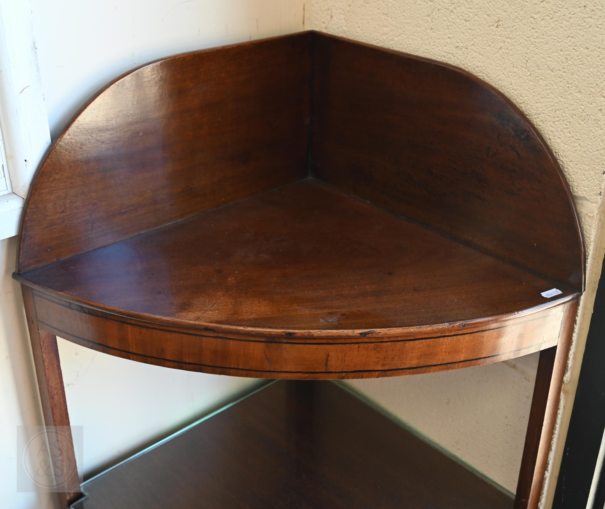 #A Victorian mahogany two-tier corner night stand, 104 cm h