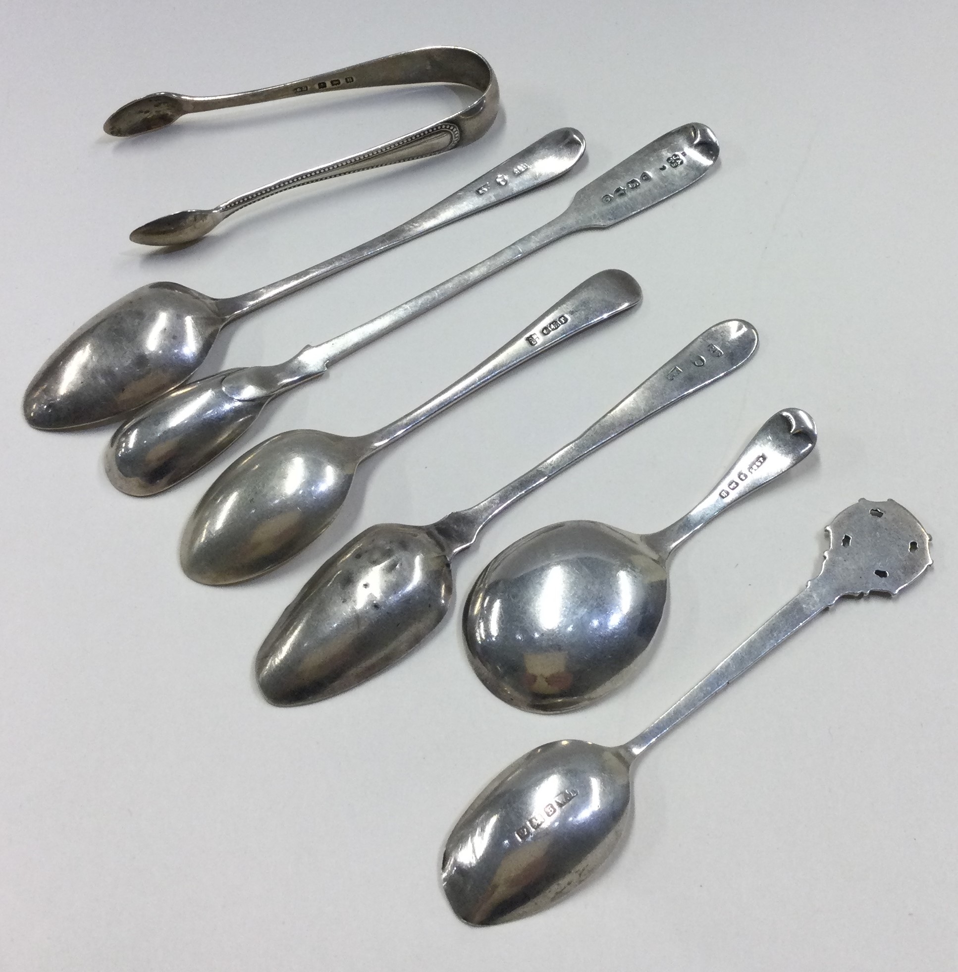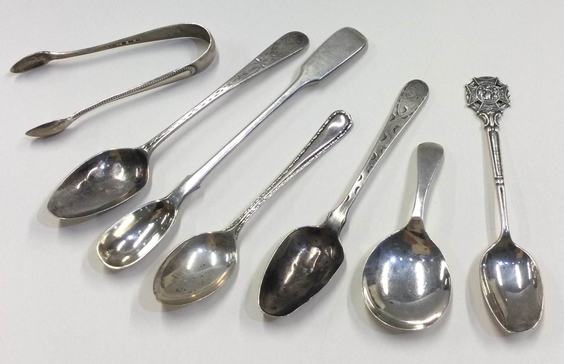 A group of silver preserve spoons etc. Various dates and makers. Approx. 86 grams. Est. £20 - £30.