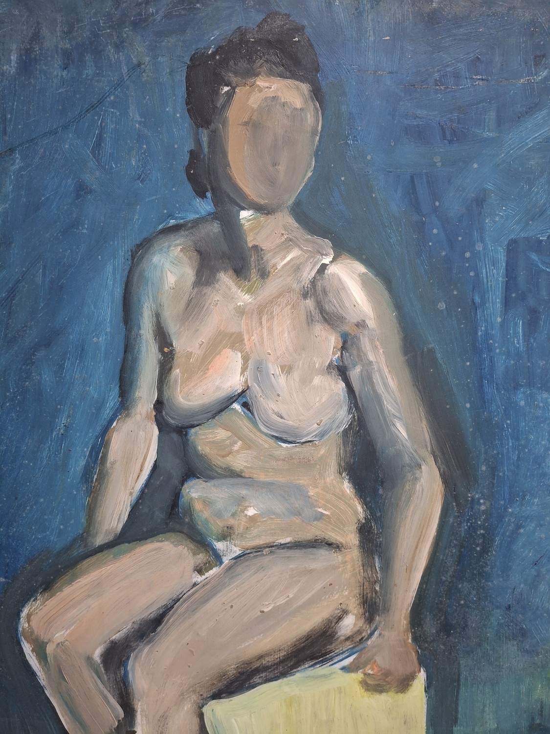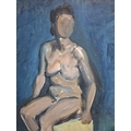 John Cedric Pighills (Yorkshire 1943-2025) oil on board painting depicting a faceless naked woman posing, unframed.