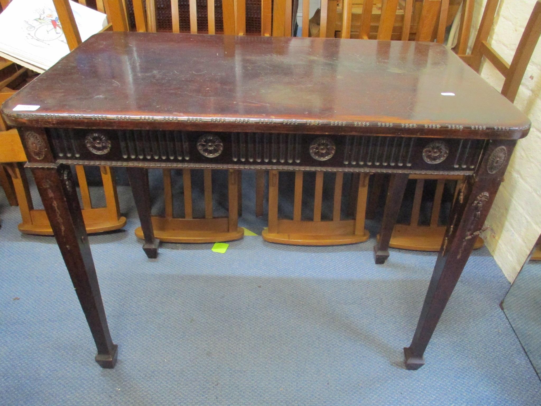 A 1920's mahogany side table having Adams style decoration and on square tapering legs, 74cm h x 91cm wLocation: FSL