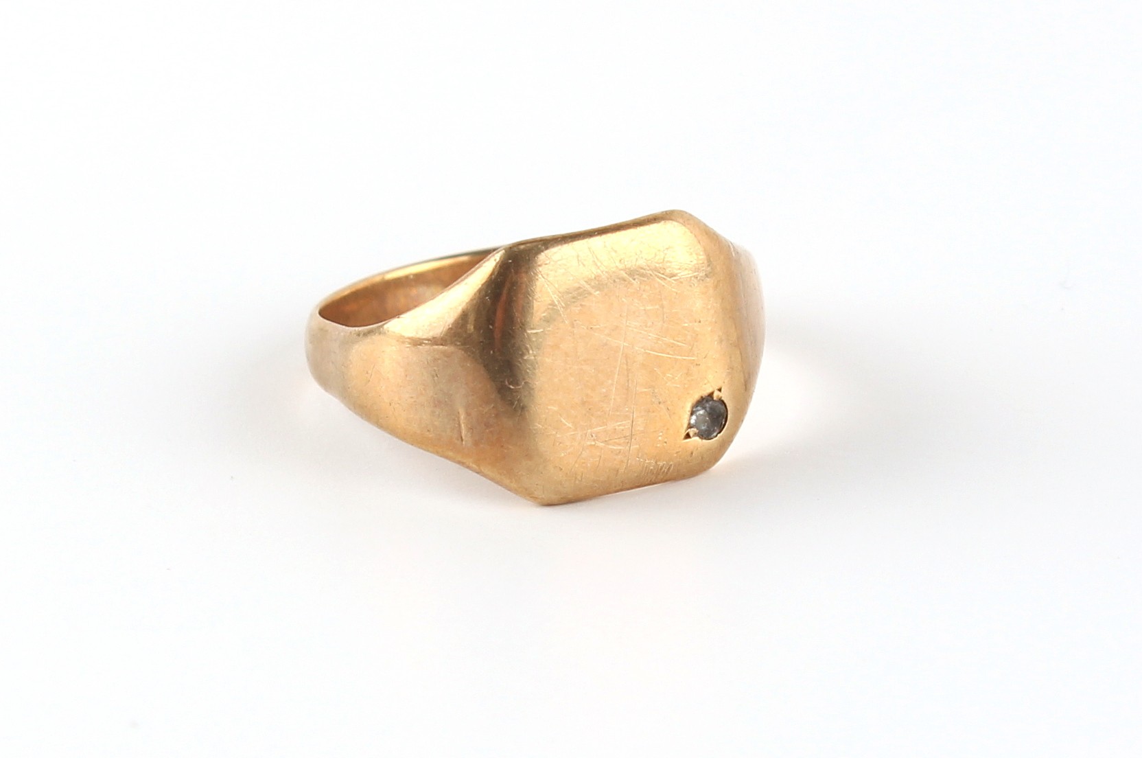 Property of a gentleman - a gentleman's 9ct gold signet ring, the shank slightly distorted, approximately 4.3 grams, size Q.