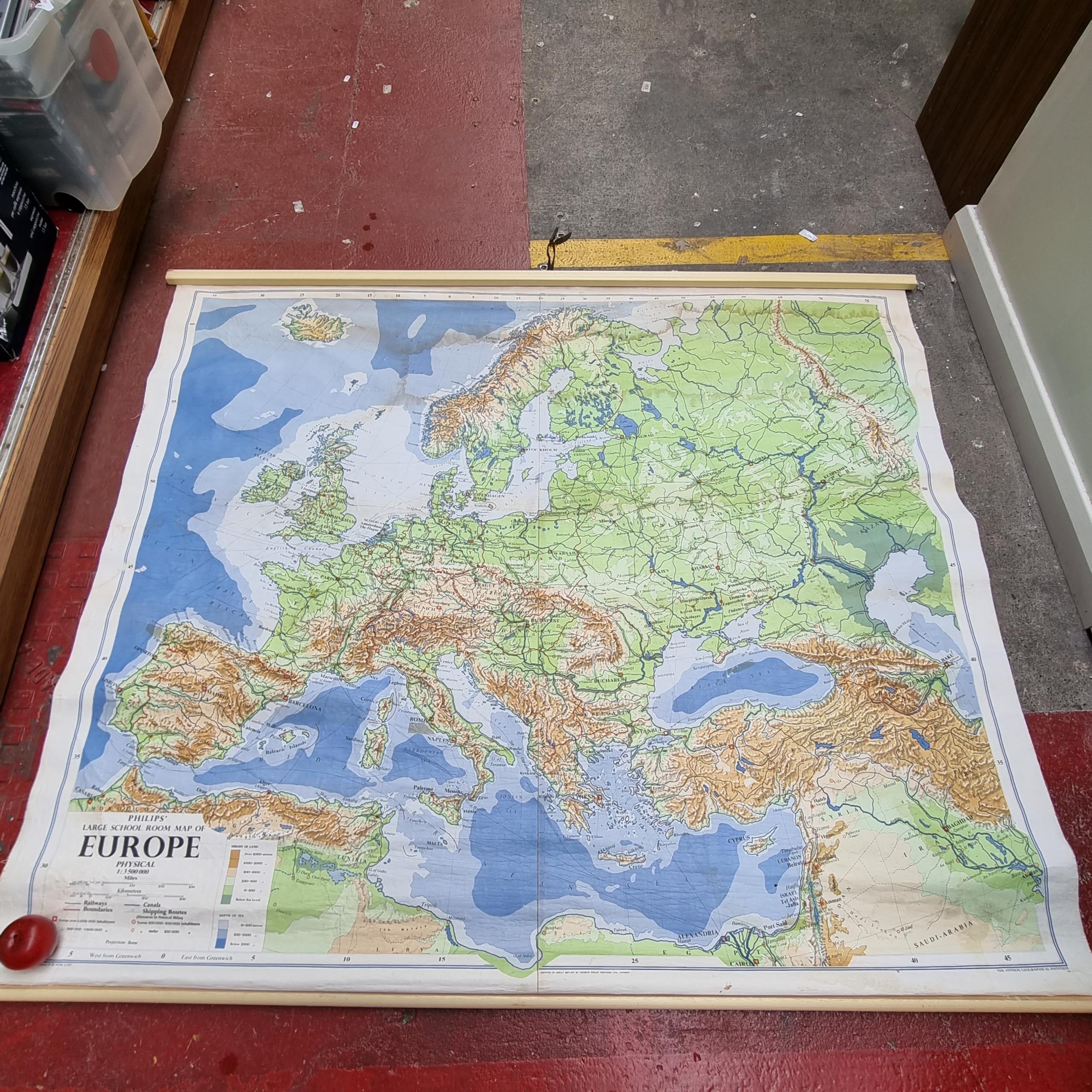 A large vintage wall hanging map by George Philip & Son. Depicting Europe circa 1977. H132cm x W158cm