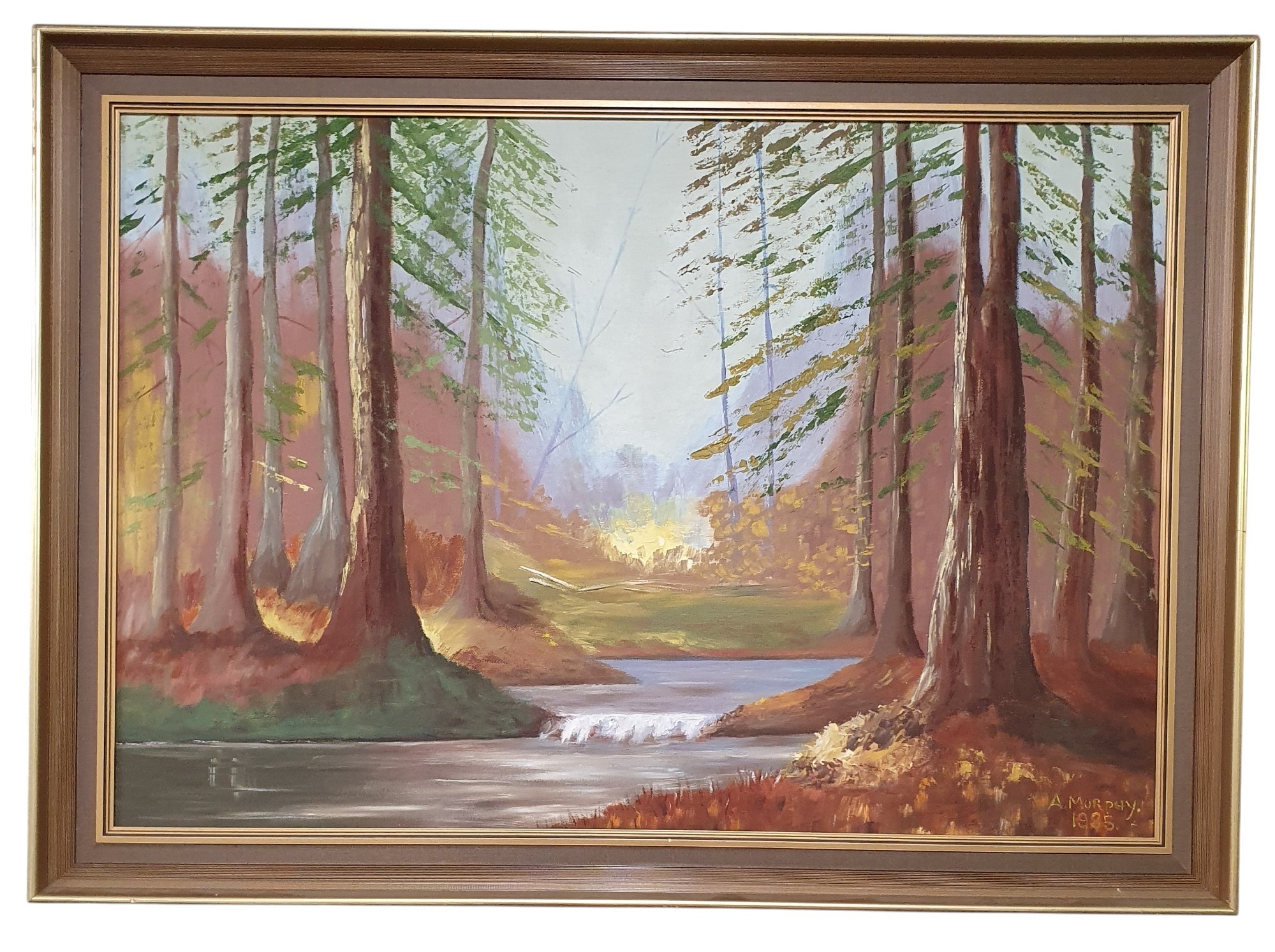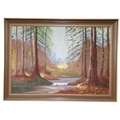 A 20th Century Oil on Board of a wooded scene in a good gilt frame. Signed LR.