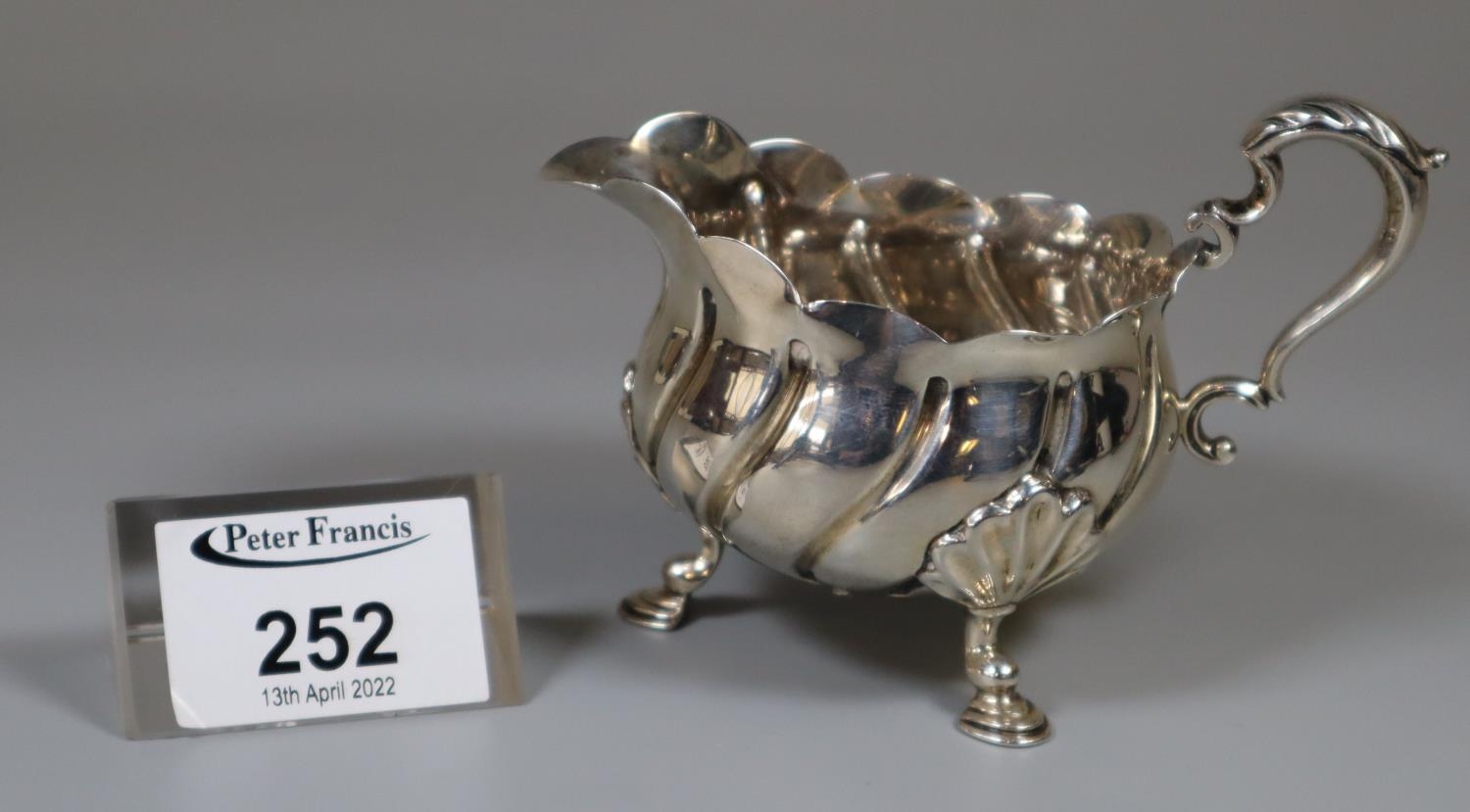 Late Victorian silver cream jug raised on three hoof feet. London, 1895. 3.25oz troy approx.
