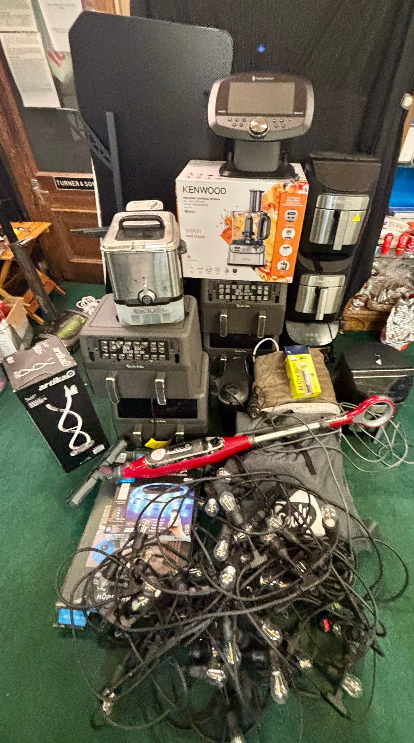 VERY LARGE QTY OF DAMAGE REPAIRABLES INCL - VARIOUS AIR FRYERS, KENWOOD MIXER, DEEP FAT FRYER, SINGING MACHINE, VARIOUS LIGHTS ETC