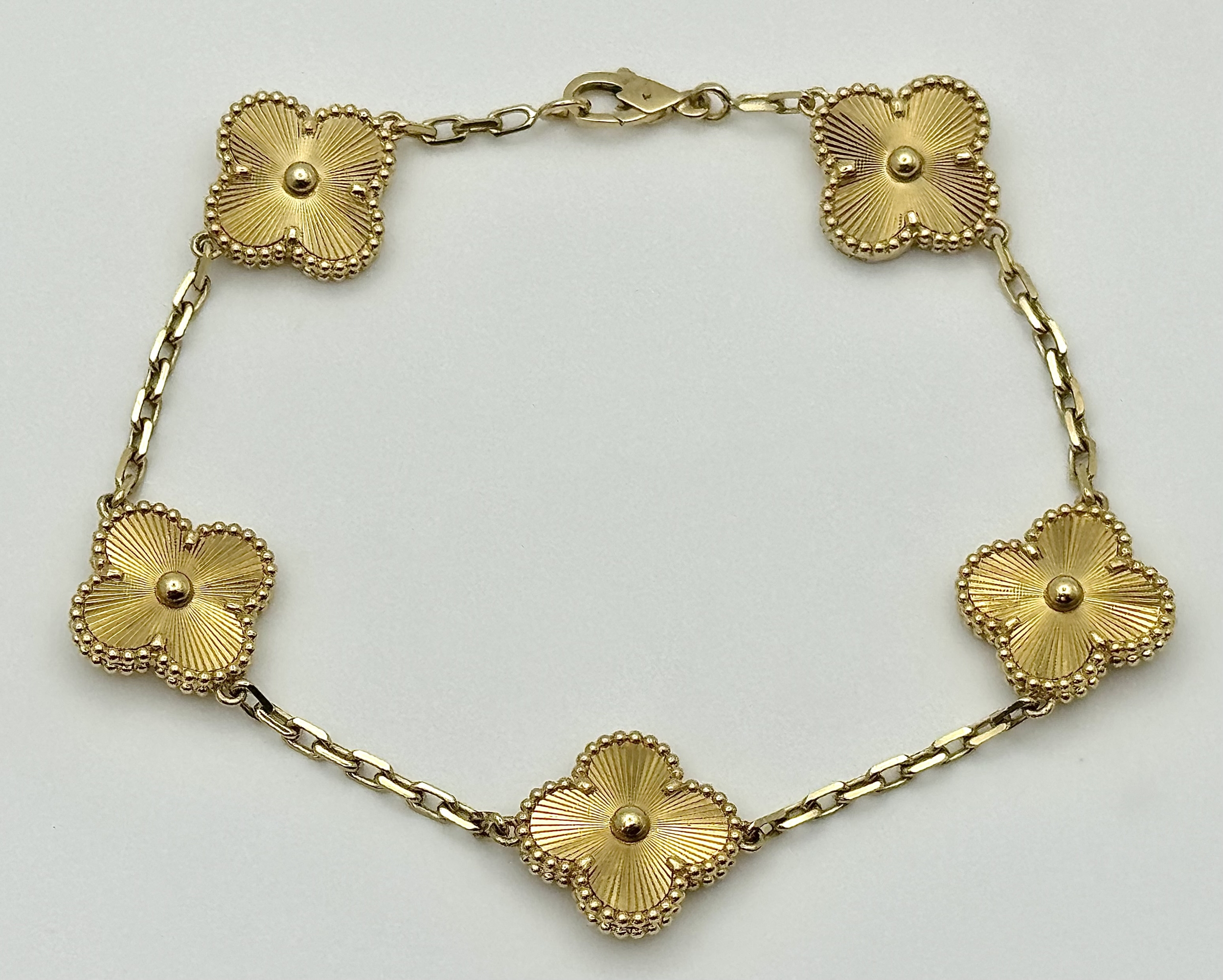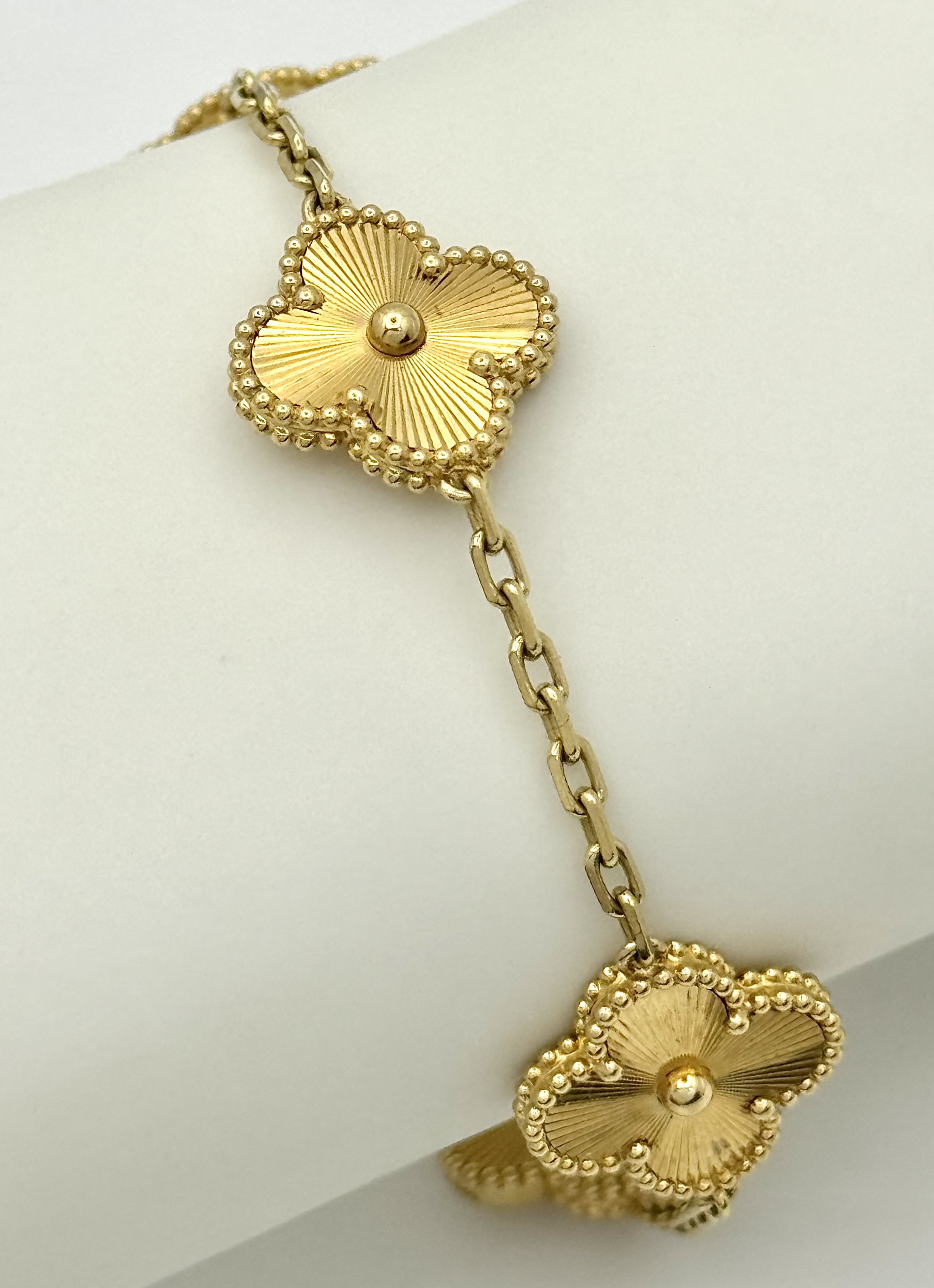 AN 18K YELLOW GOLD CLOVER BRACELET. TOTAL WEIGHT 13.2G. TOTAL LENGTH 19CM. SC 1069